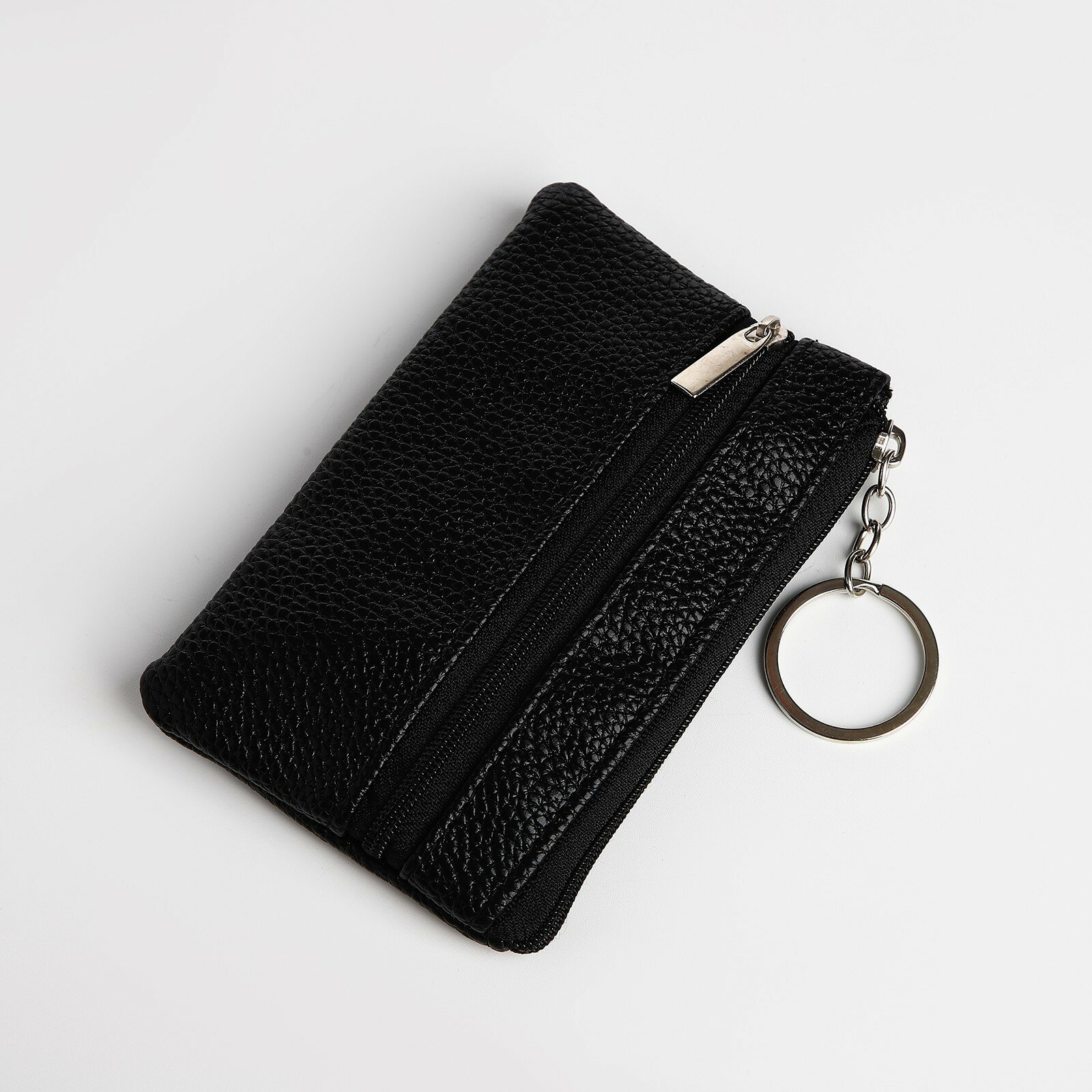Ключница - кошелёк на молнии, длина 12 см, кольцо, цвет чёрный интересное: