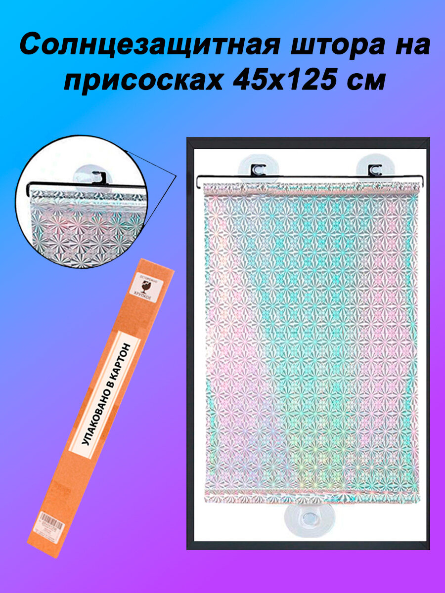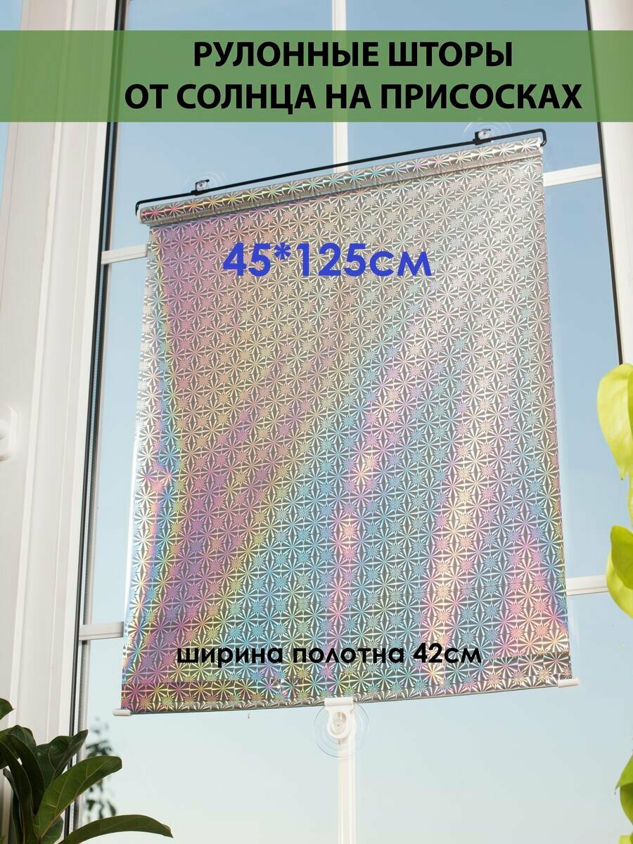 Рулонные шторы от солнца на присосках, серебристые 45*125см