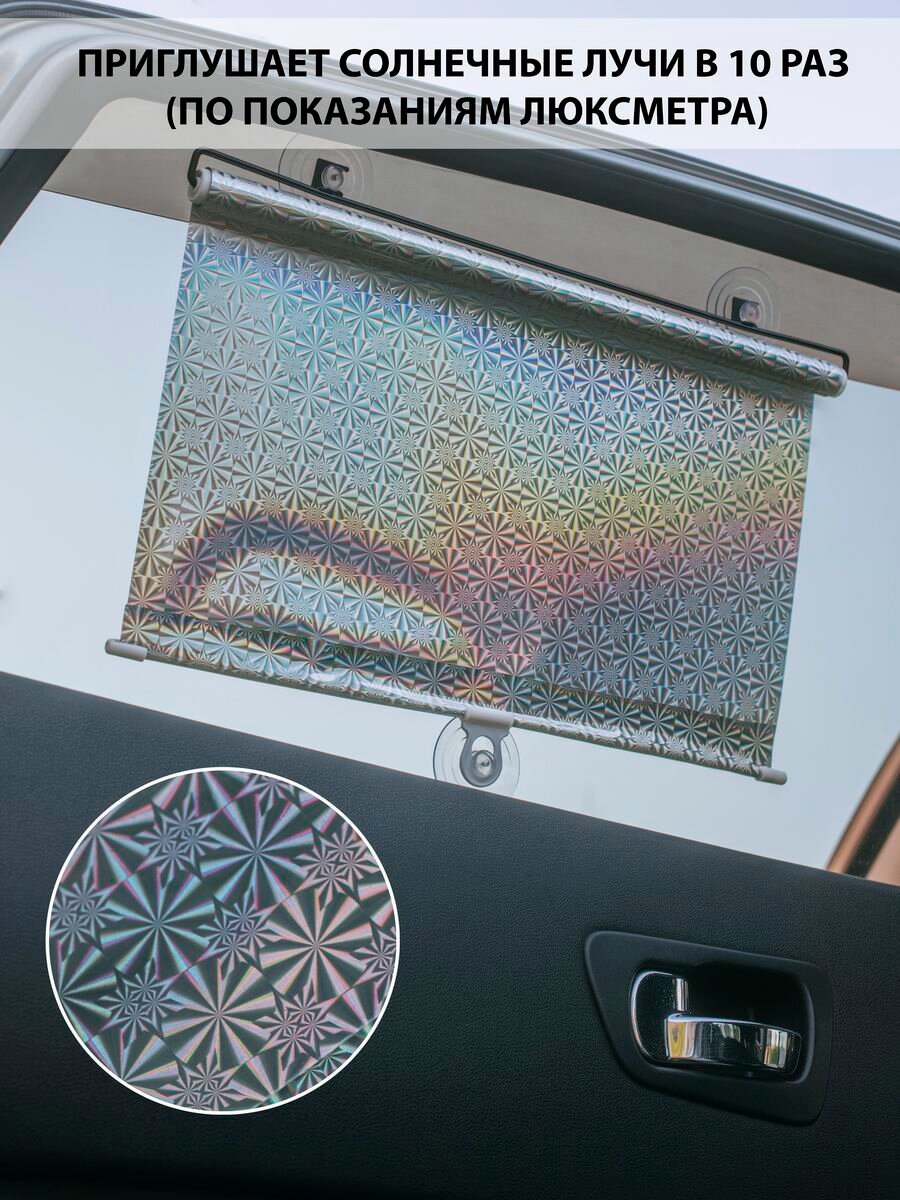 Купить Рулонная штора HUNE от солнца на присосках, серебристая 45*125см, пленка ПВХ