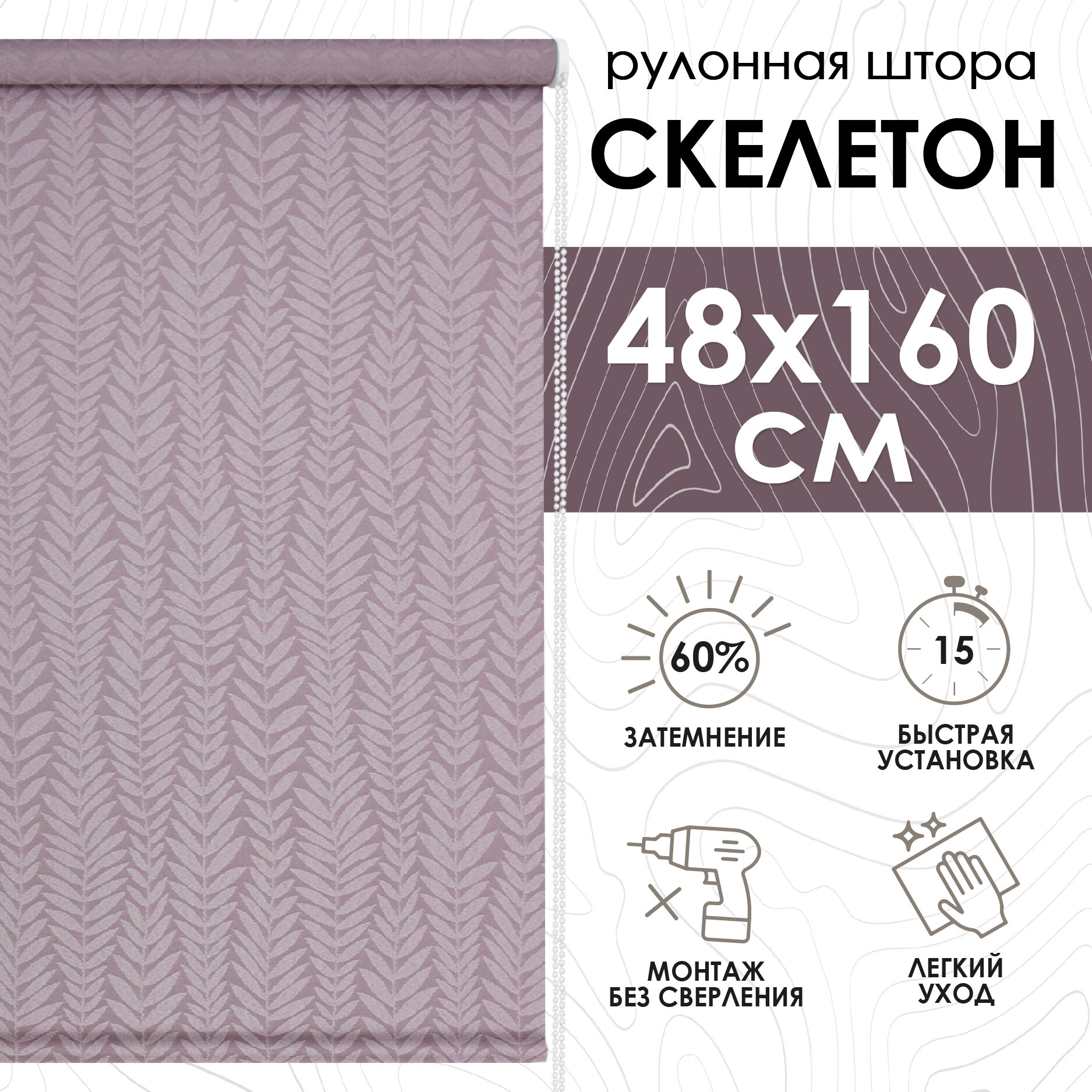 СохранитьРулонная штора Эскар Скелетон, полиэстер, пыльная роза, 48 х 160 см интересное: