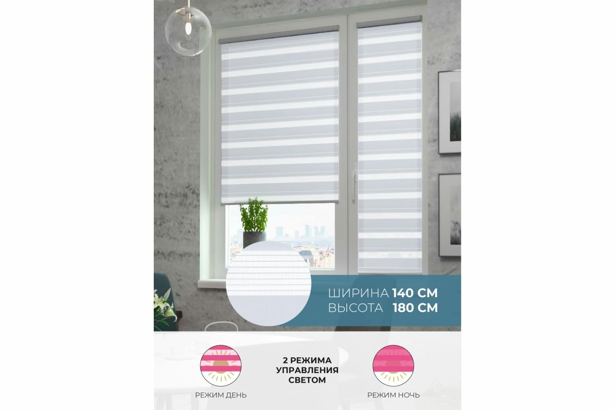 Купить Рулонные шторы день ночь Бейс Белый DECOFEST 140 см х 180 см, жалюзи на окно