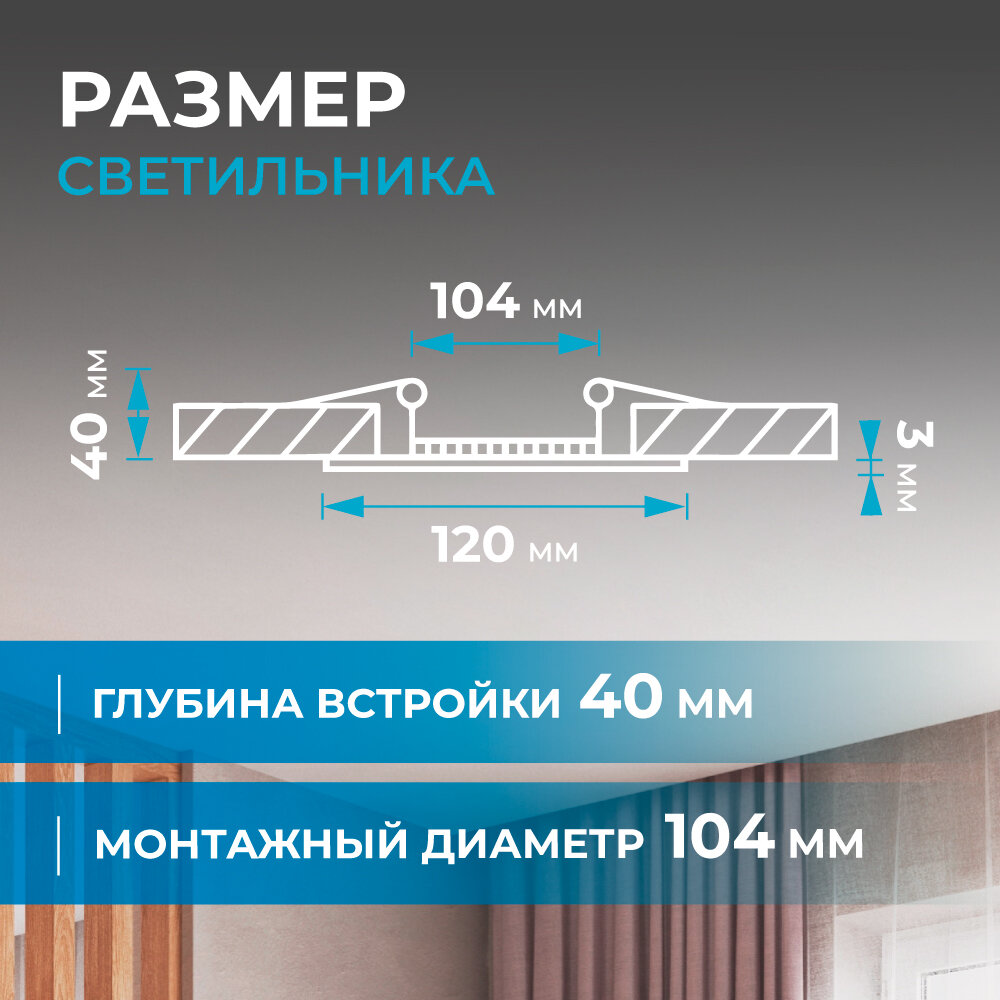 | Ширина/диаметр врезного отверстия | 104 мм |