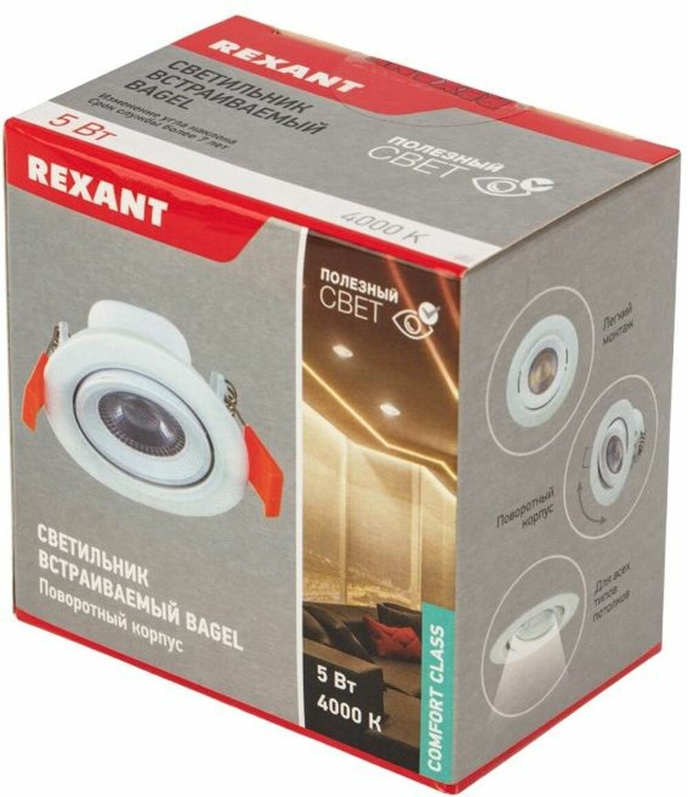 Светильник встраиваемый поворотный REXANT Bagel 5 Вт 4000 К LED интересное: