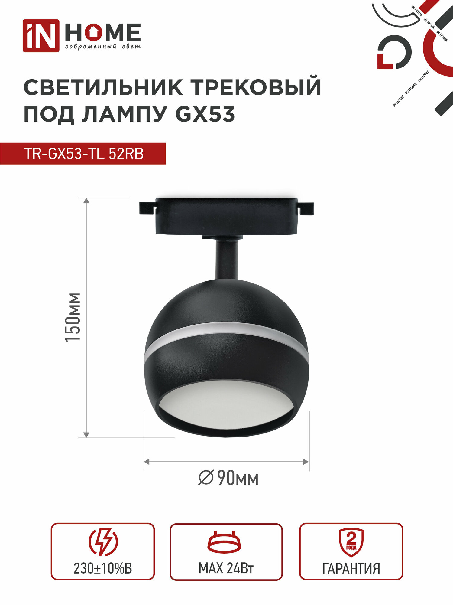 СохранитьСветильник трековый под лампу с подсветкой TR-GX53-TL 52RB GX53 черный серии TOP-LINE IN HOME интересное: