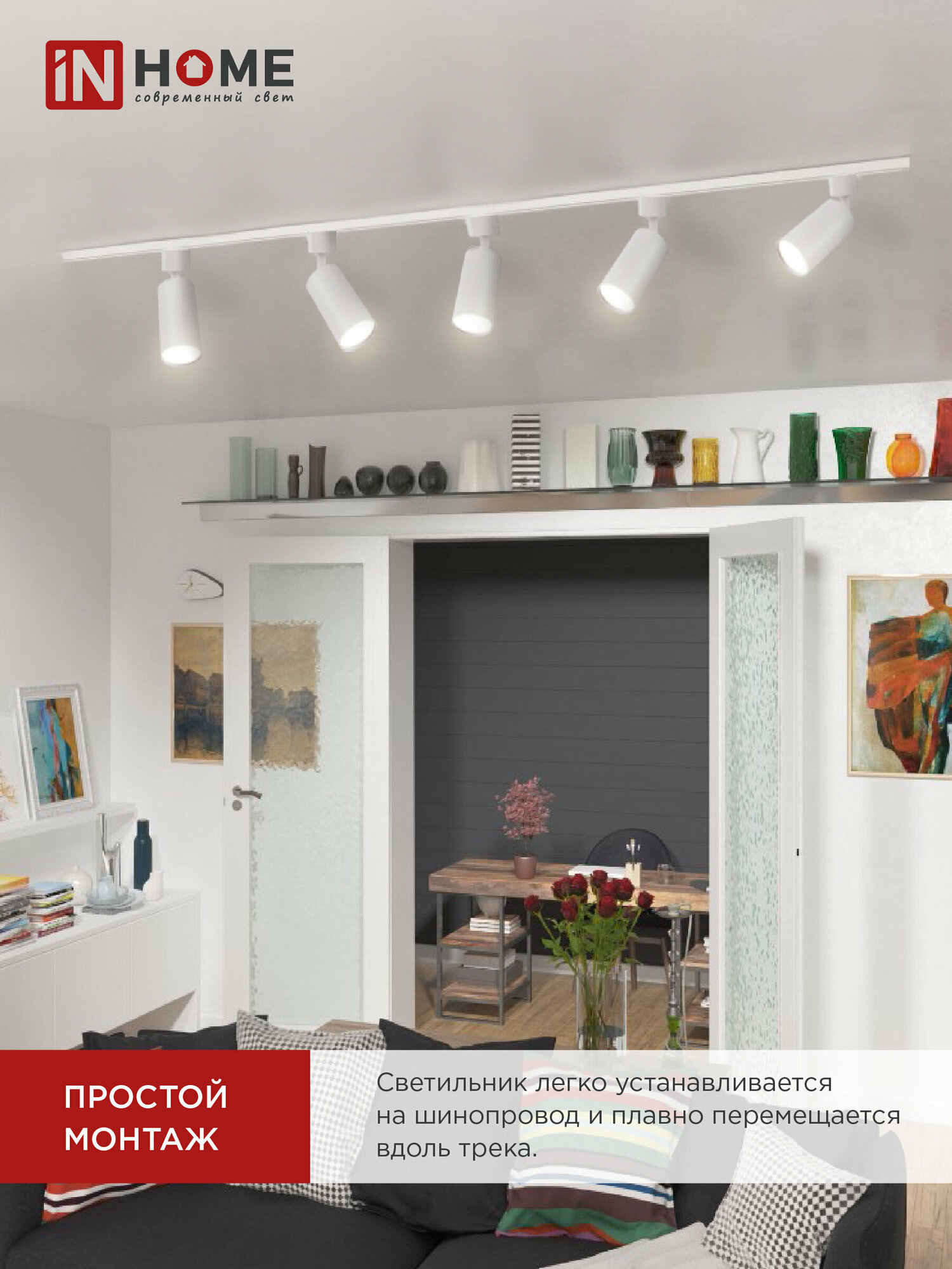Светильник трековый TR-GU10-TL 6RW под лампу GU10 с подсветкой белый IN HOME