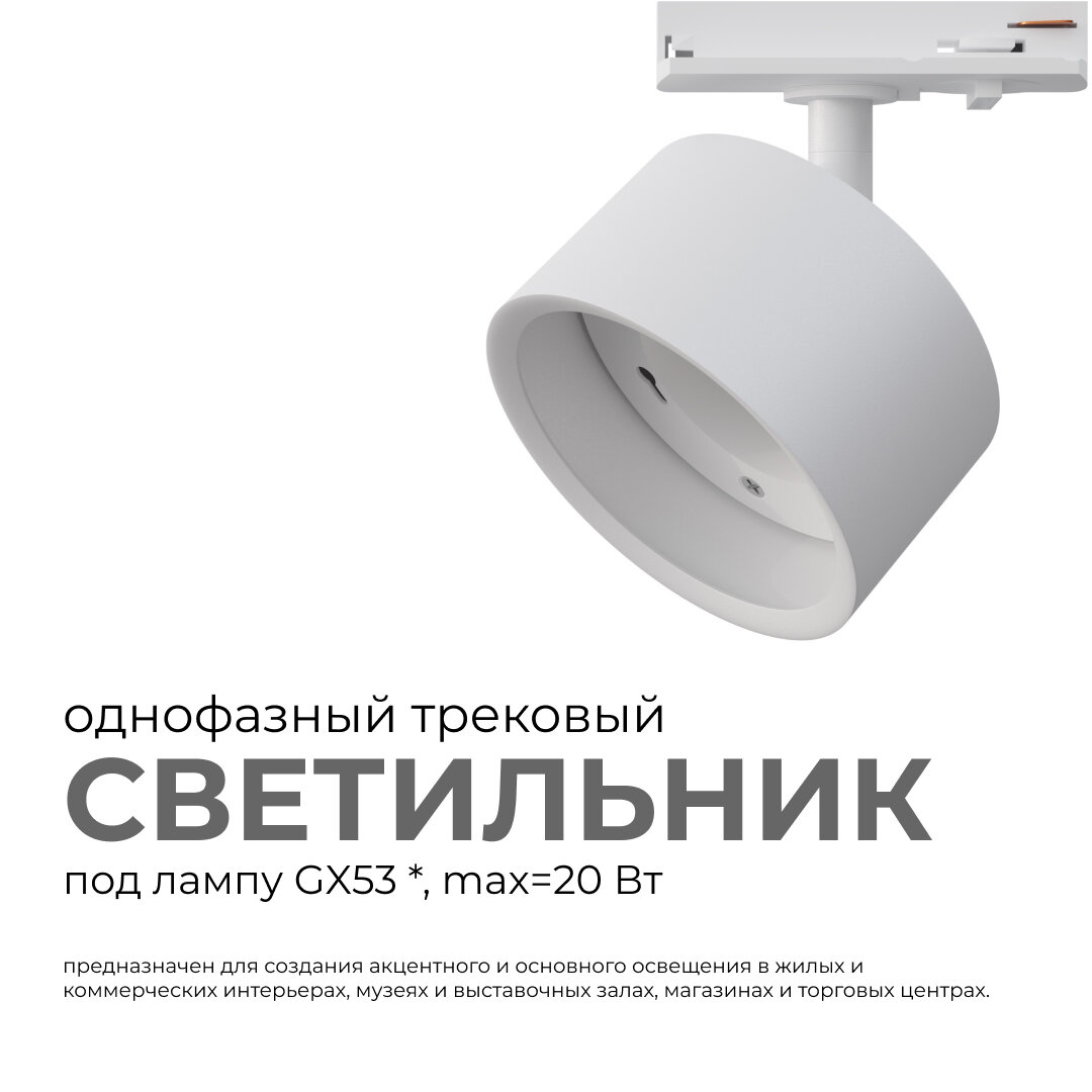 Трековый однофазный светильник, 230В, GX53, 20Вт, d83х45х101мм, белый, пластик интересное: