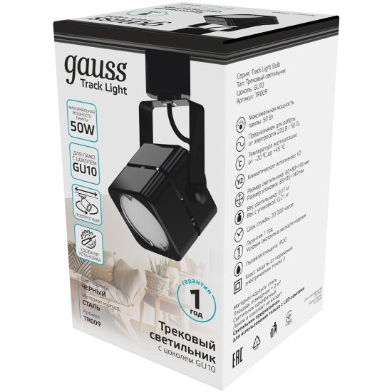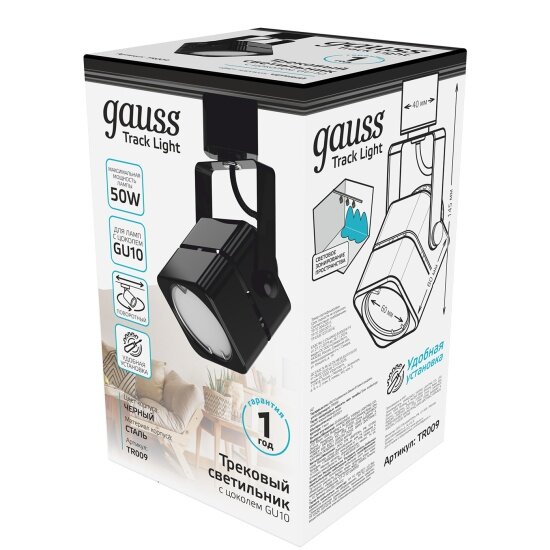 Купить Трековый светильник Gauss куб GU10 220V IP20 60*145мм черный однофазный 1/50