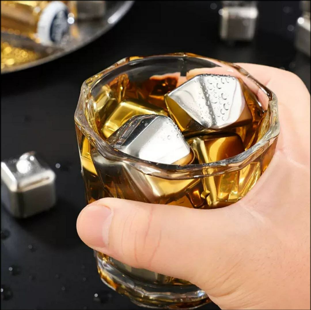 Лед многоразовый / Стальные камни для виски и коктейлей 6шт в наборе с щипцами и кейсом интересное: