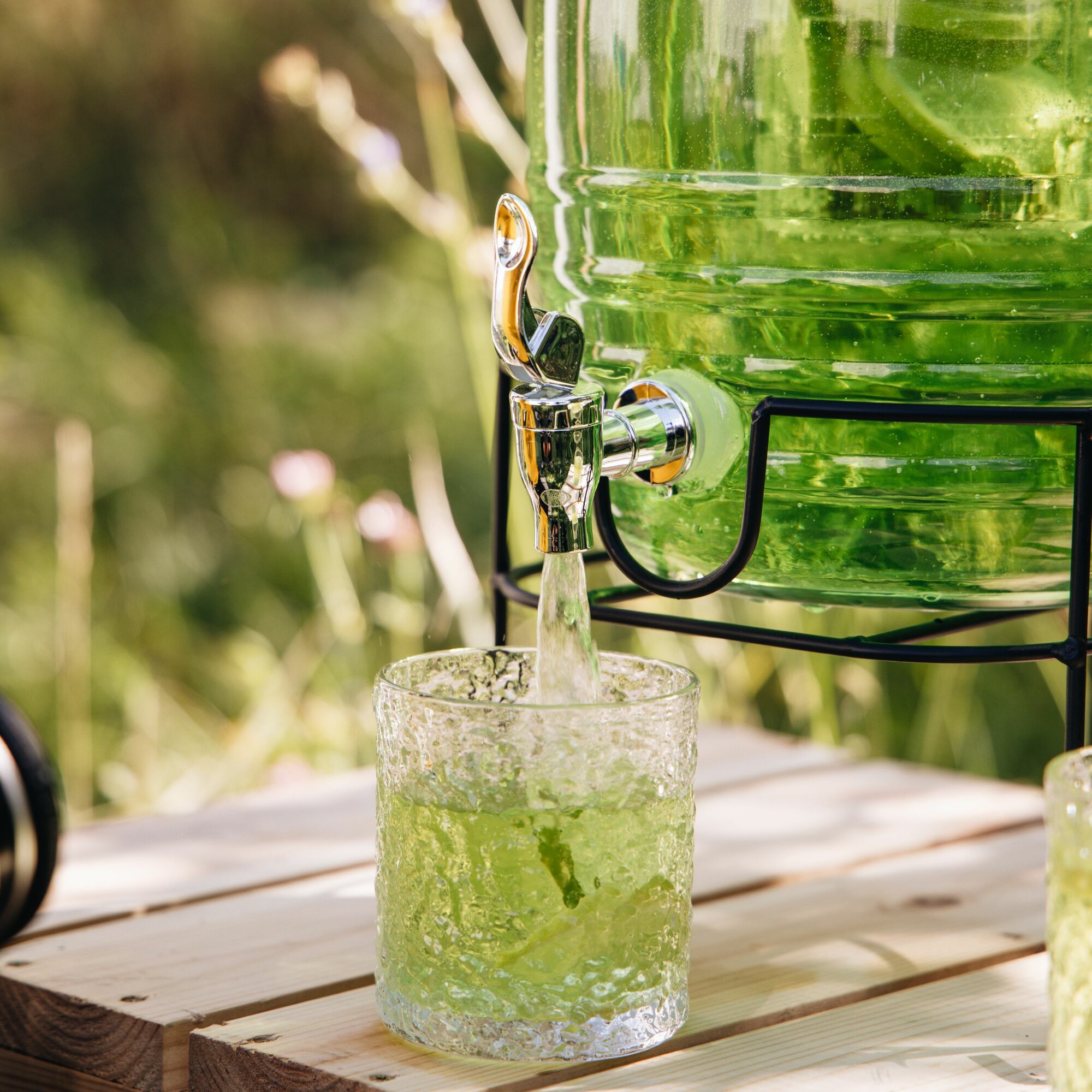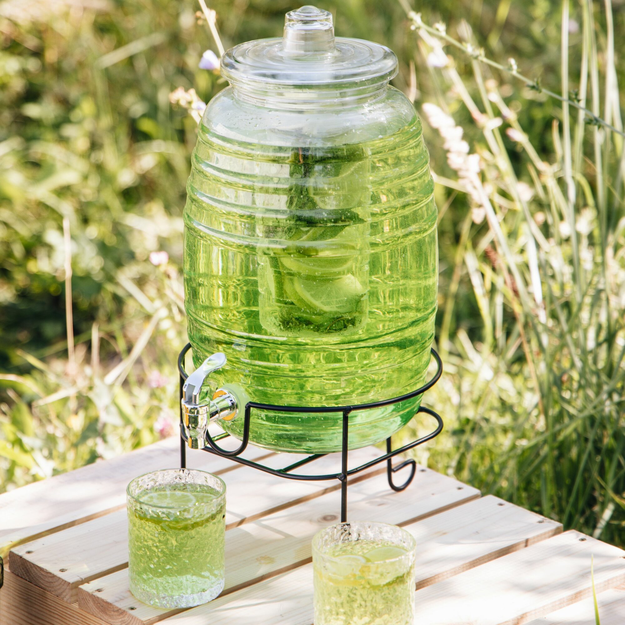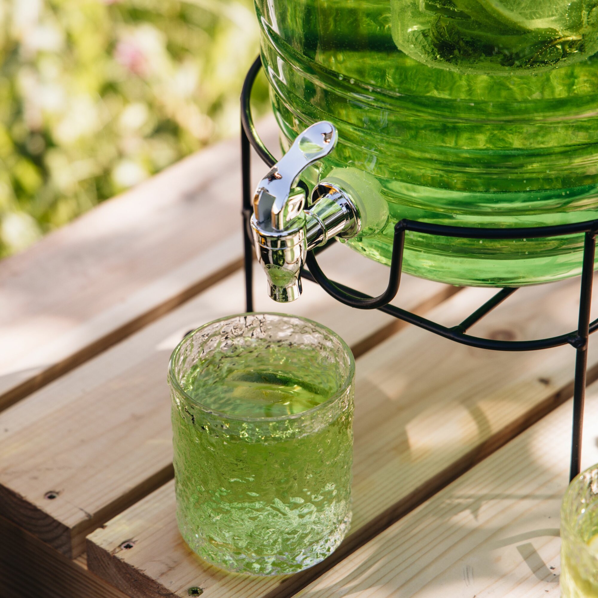 Диспенсер для напитков из стекла с краном 10 л., на подставке, размеры: 22,3 х 22,3 х 36 см интересное: