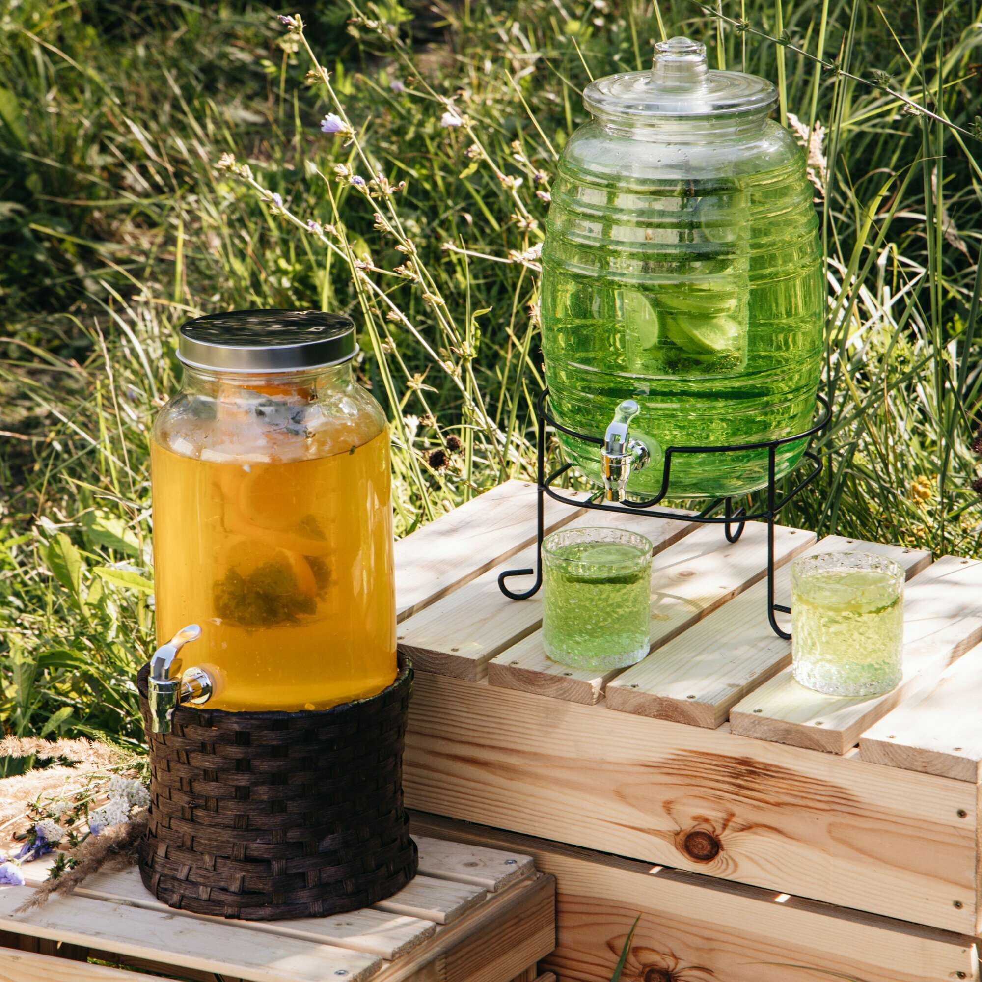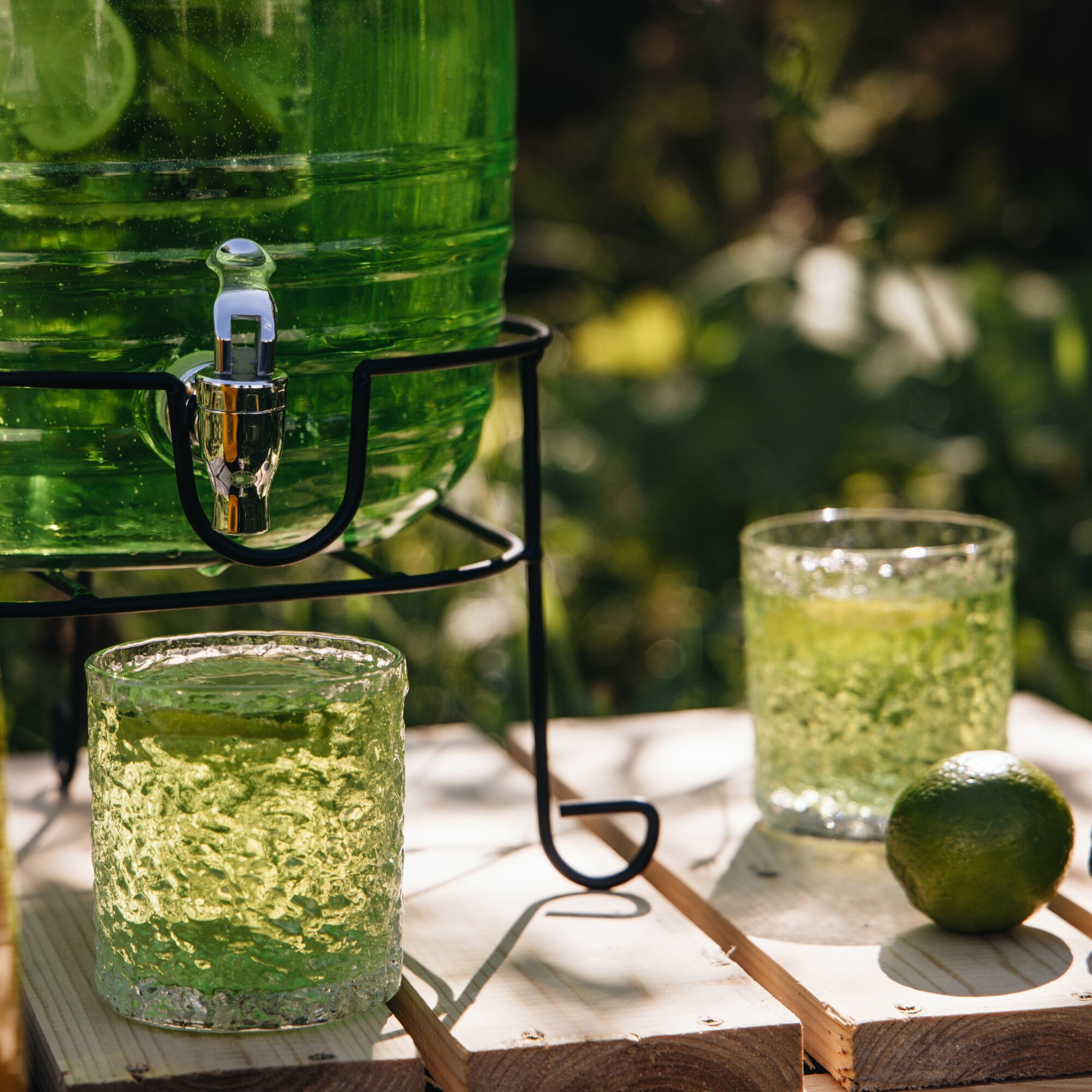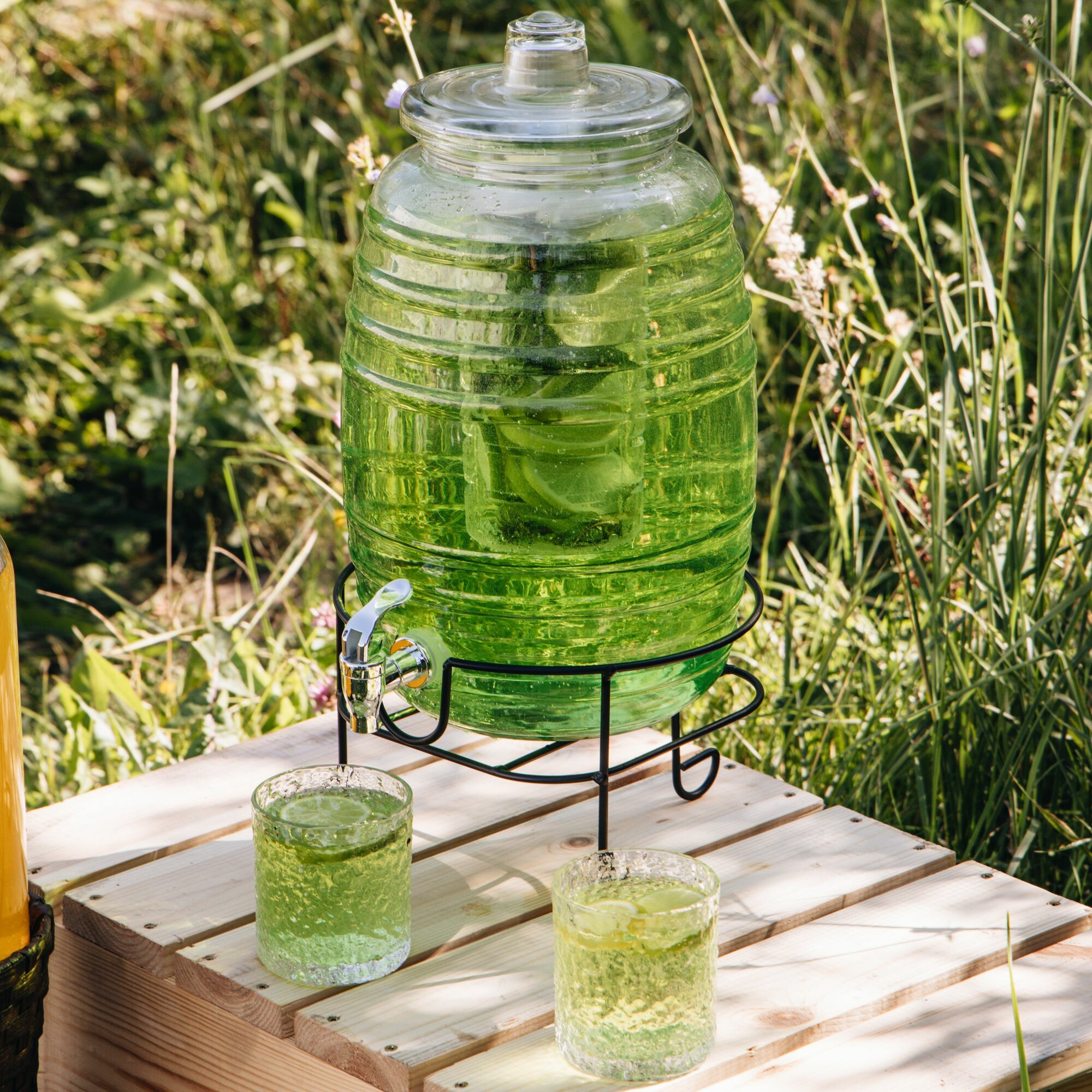 Диспенсер для напитков из стекла с краном 10 л., на подставке, размеры: 22,3 х 22,3 х 36 см интересное: