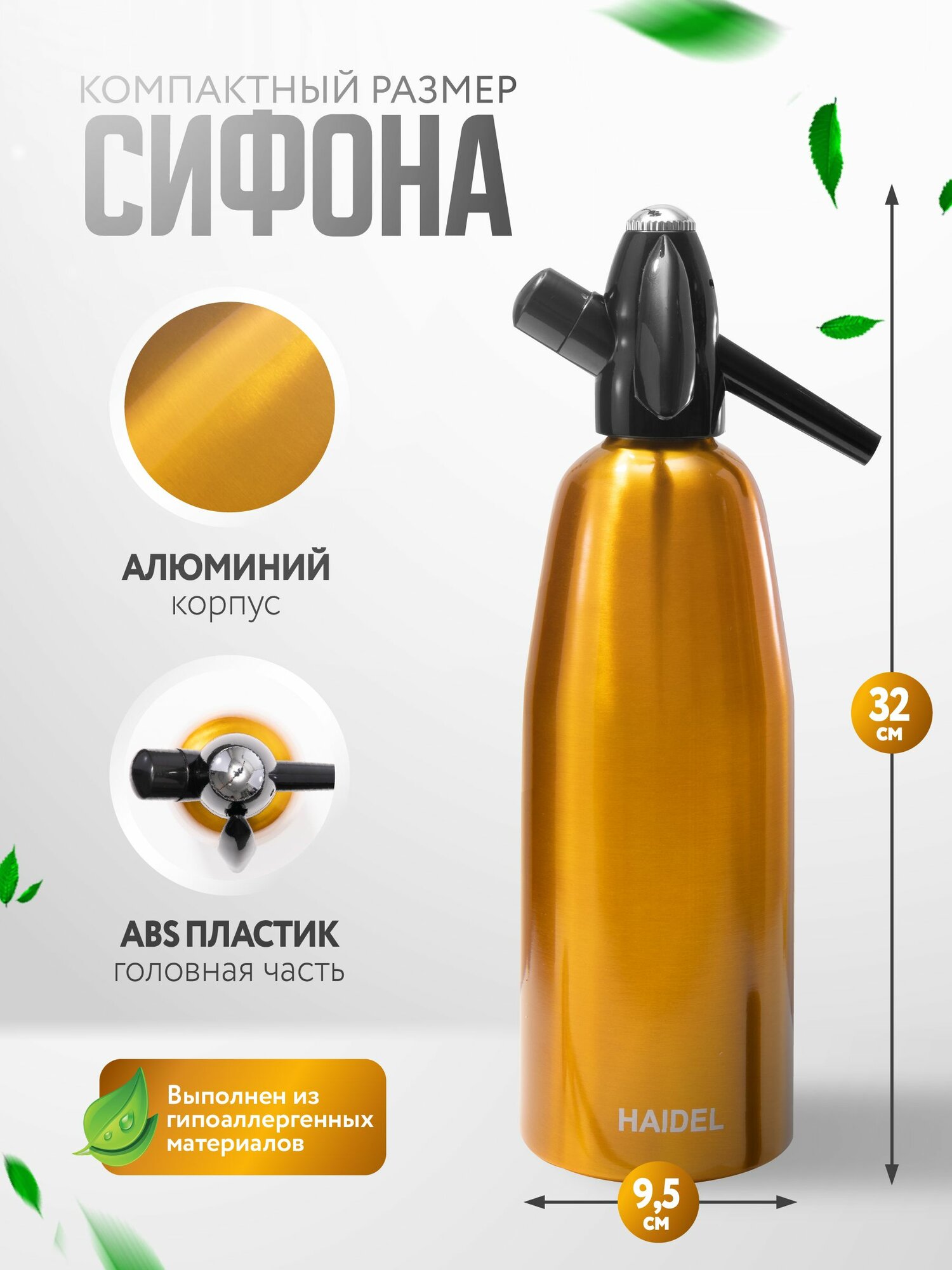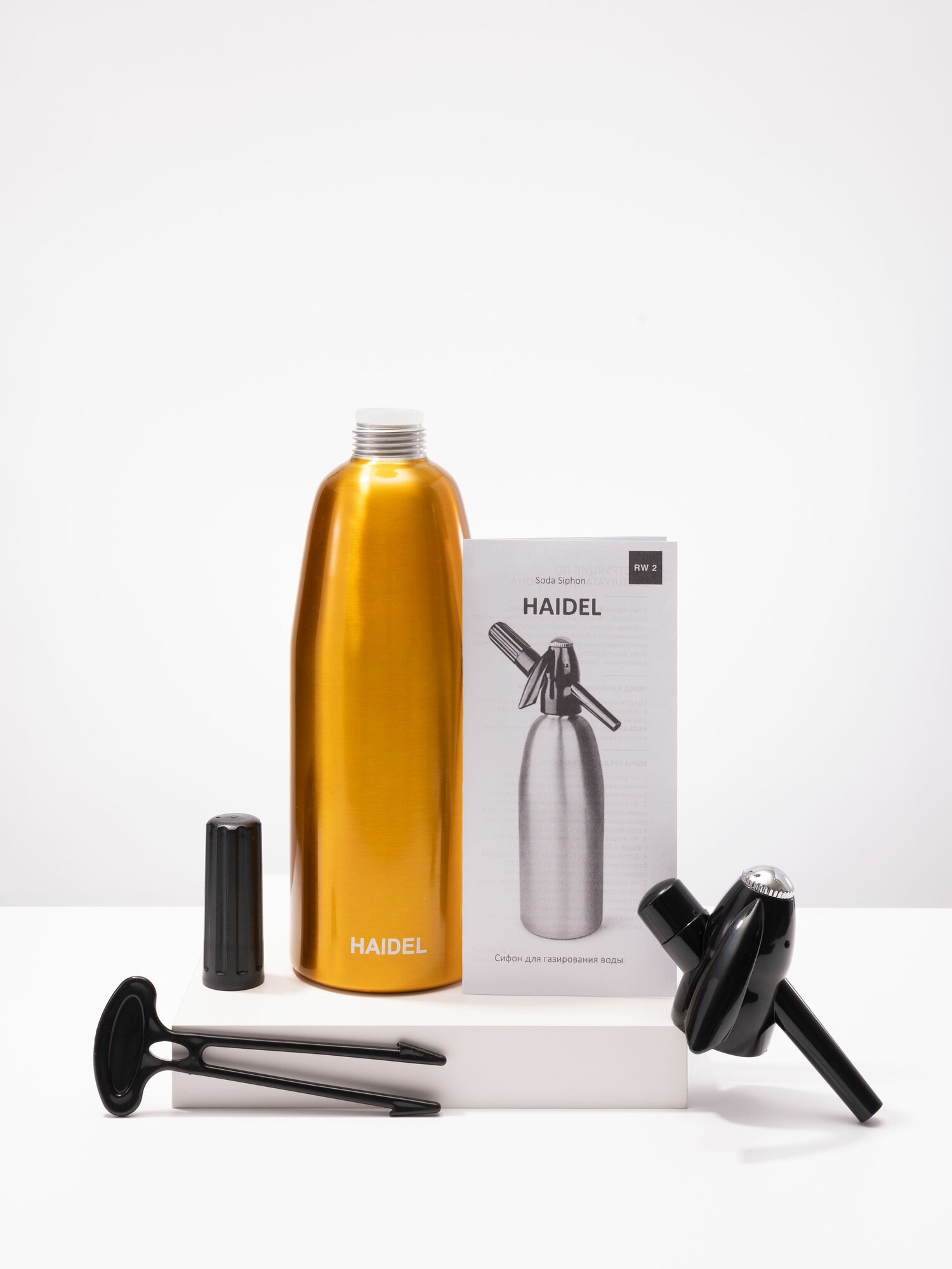 Купить Сифон для газирования воды, 10 баллончиков + сироп для приготовления 5 л натурального лимонада, HAIDEL RW 2, золотистый