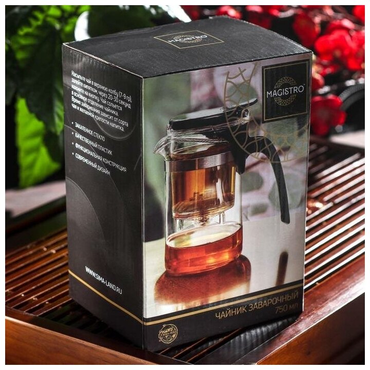 Чайник стеклянный заварочный Magistro «Мехико», 500 мл, с металлическим ситом, пластиковая колба