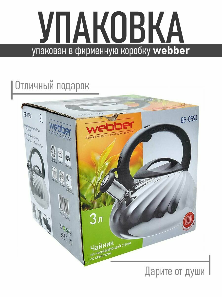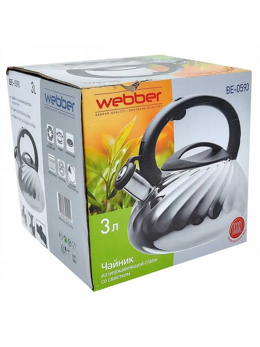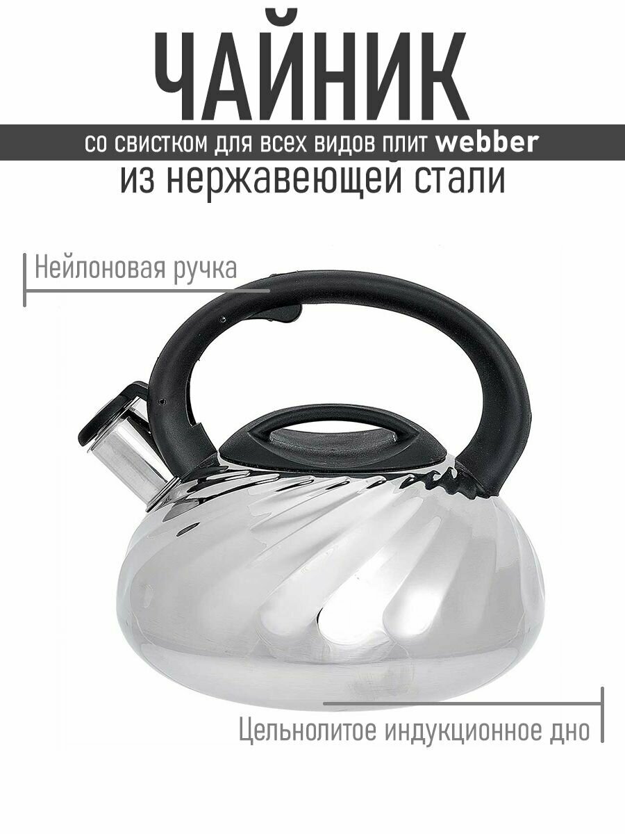 Чайник со свистком Webber BE-0527 для плит 3.5л. (стальной)