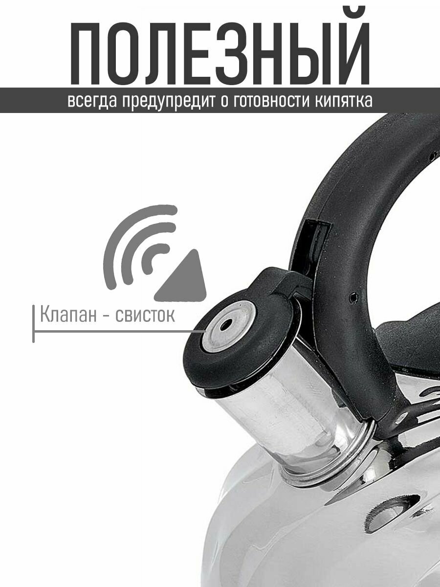 Чайник Webber BE-0527, 3.5 л, нержавеющая сталь, со свистком, для всех типов плит, черный