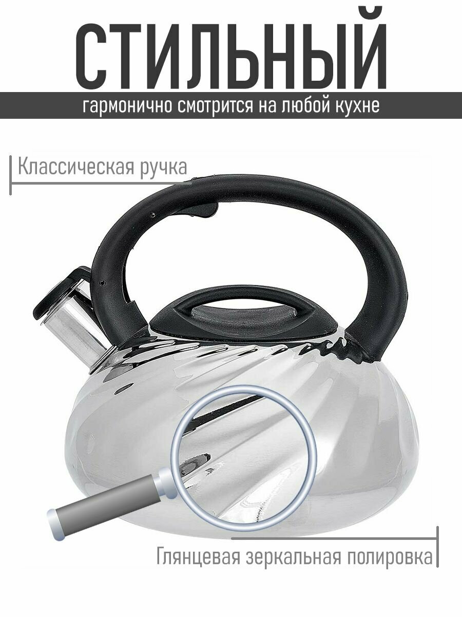 Чайник Webber BE-0590, 3 литра, нержавеющая сталь, для всех типов плит, зеркальная полировка