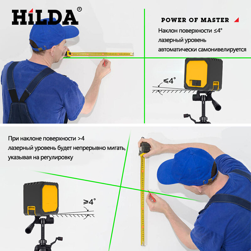 Купить Лазерный нивелир HiLDA с 2-мя линиями зеленого цвета
