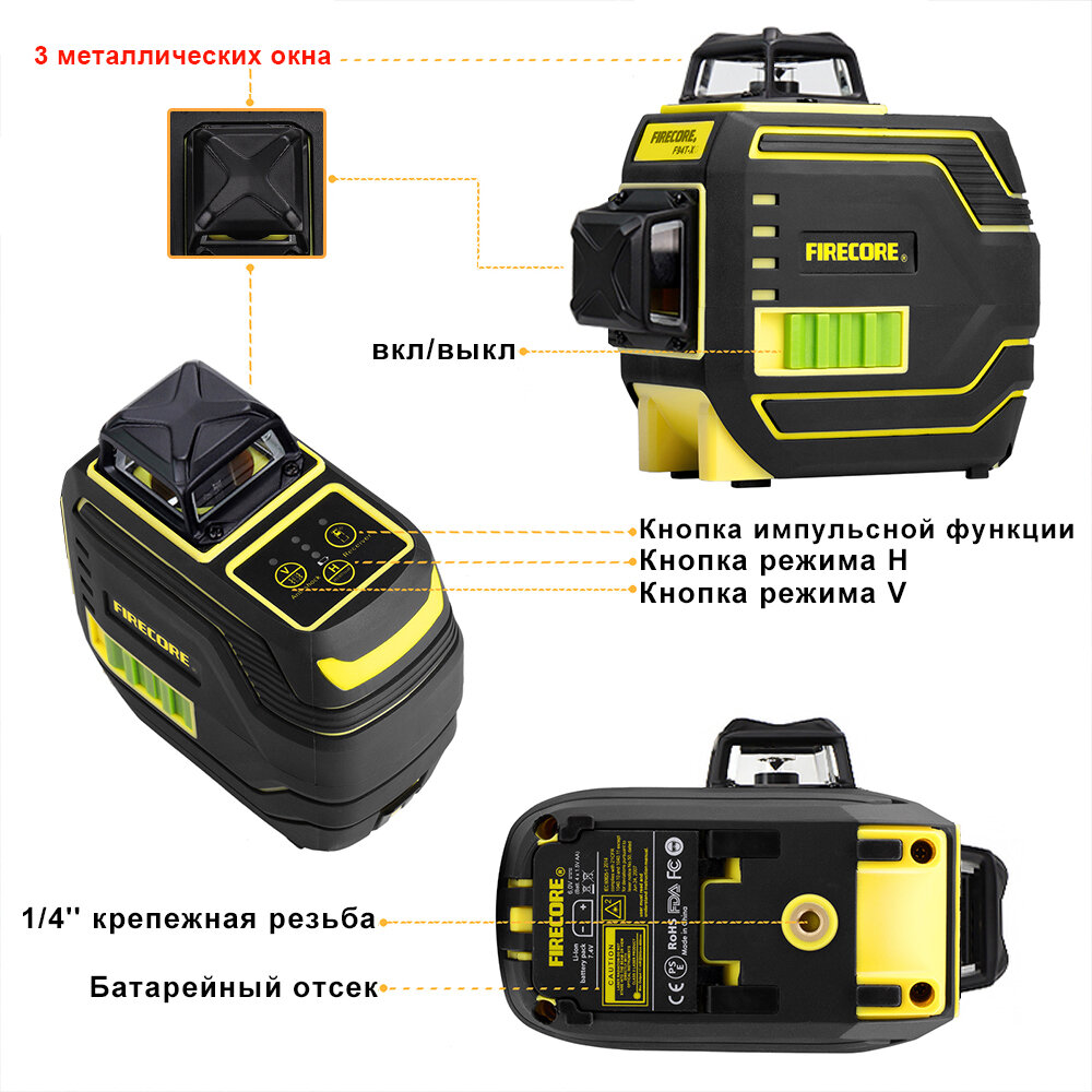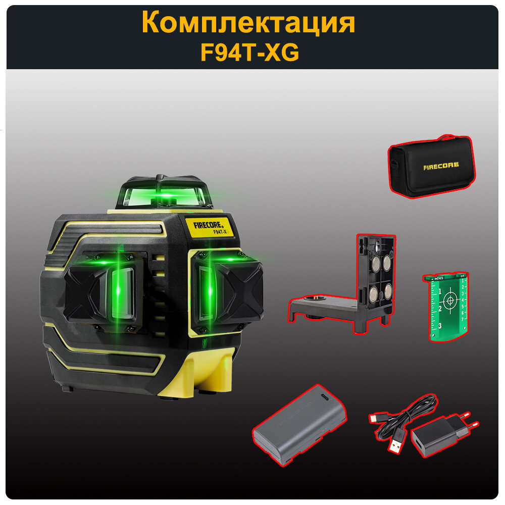 Лазерный уровень/нивелир 360 FIRECORE F94T-XG, Зеленый луч 3D 12 линий интересное: