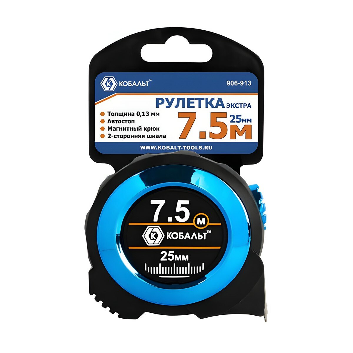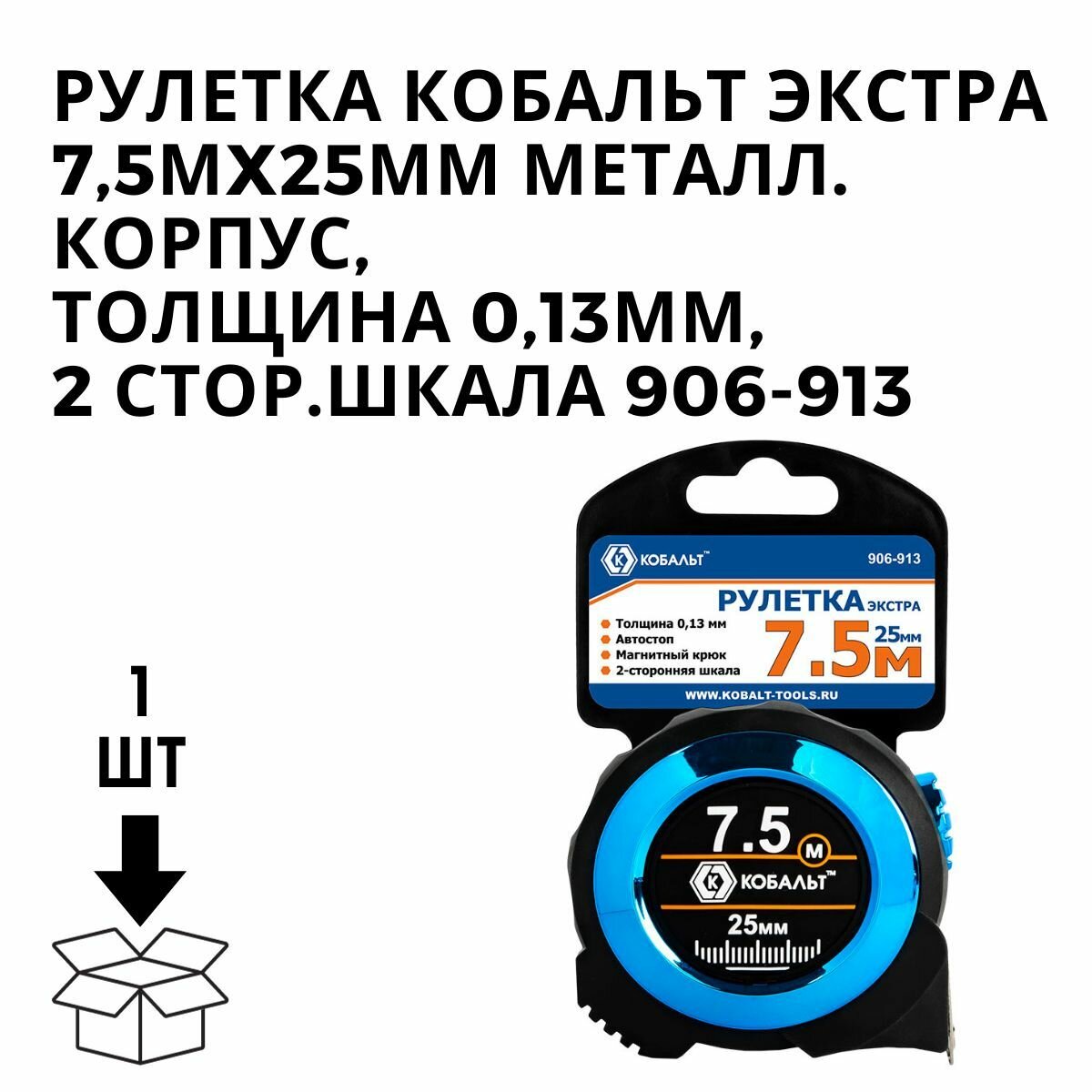 Купить Рулетка кобальт Экстра 7.5м x 25мм металлический корпус толщина 0,13 мм, автостоп, магнит, 2 стор. ш, шт