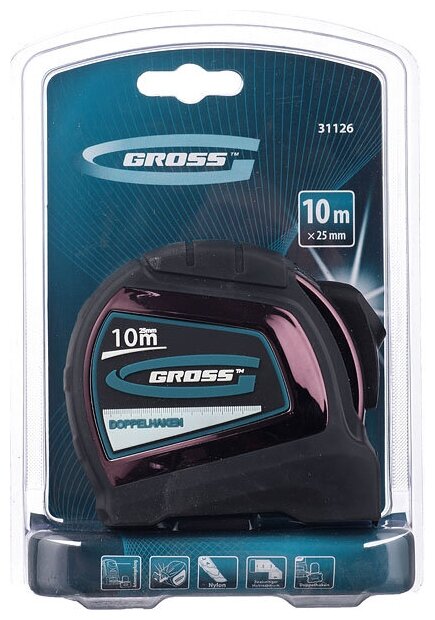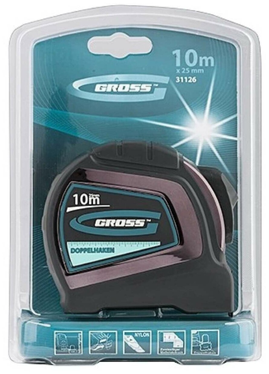 Купить Рулетка Gross Doppelhaken 10 м x 25 мм, двухсторонний зацеп, нейлон, двуст. шкала, автоматич 31126