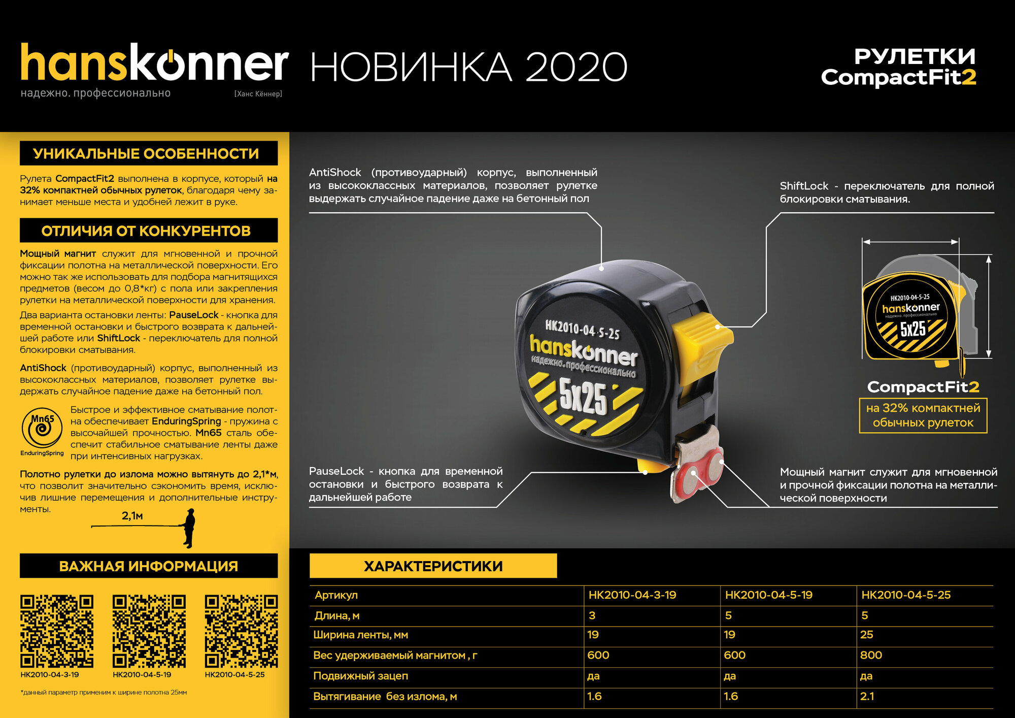 Рулетка 5 м х 25 мм Hanskonner HK2010-04-5-25 интересное: