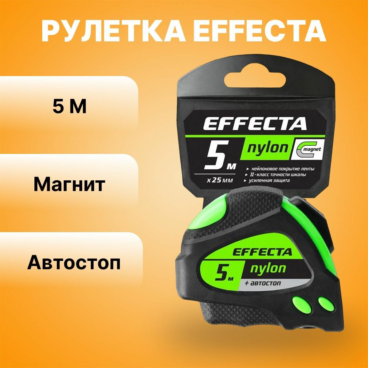Купить Рулетка 5м / 25 мм с магнитом, автостопом, лентой нейлон EFFECTA Nylon