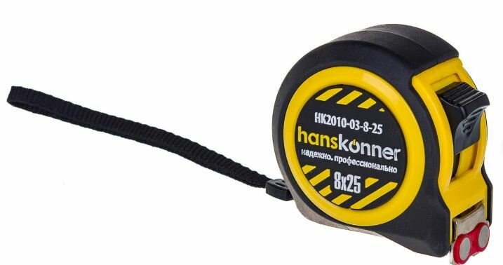 Рулетка 10x25мм, 2 стопа, компактный корпус, мощный магнит, Hanskonner