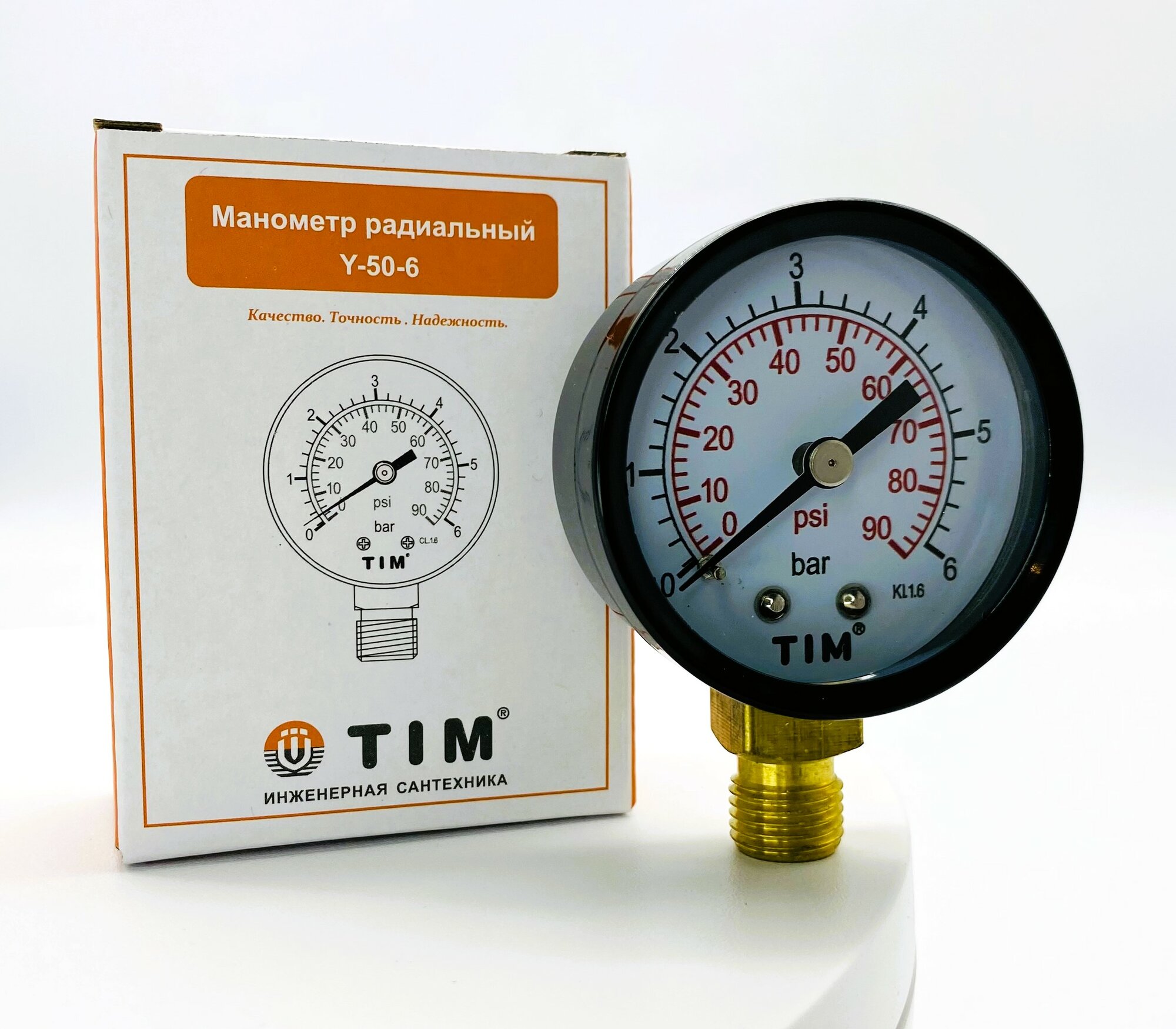 Аналоговый манометр Tim Y50-6bar 6 бар