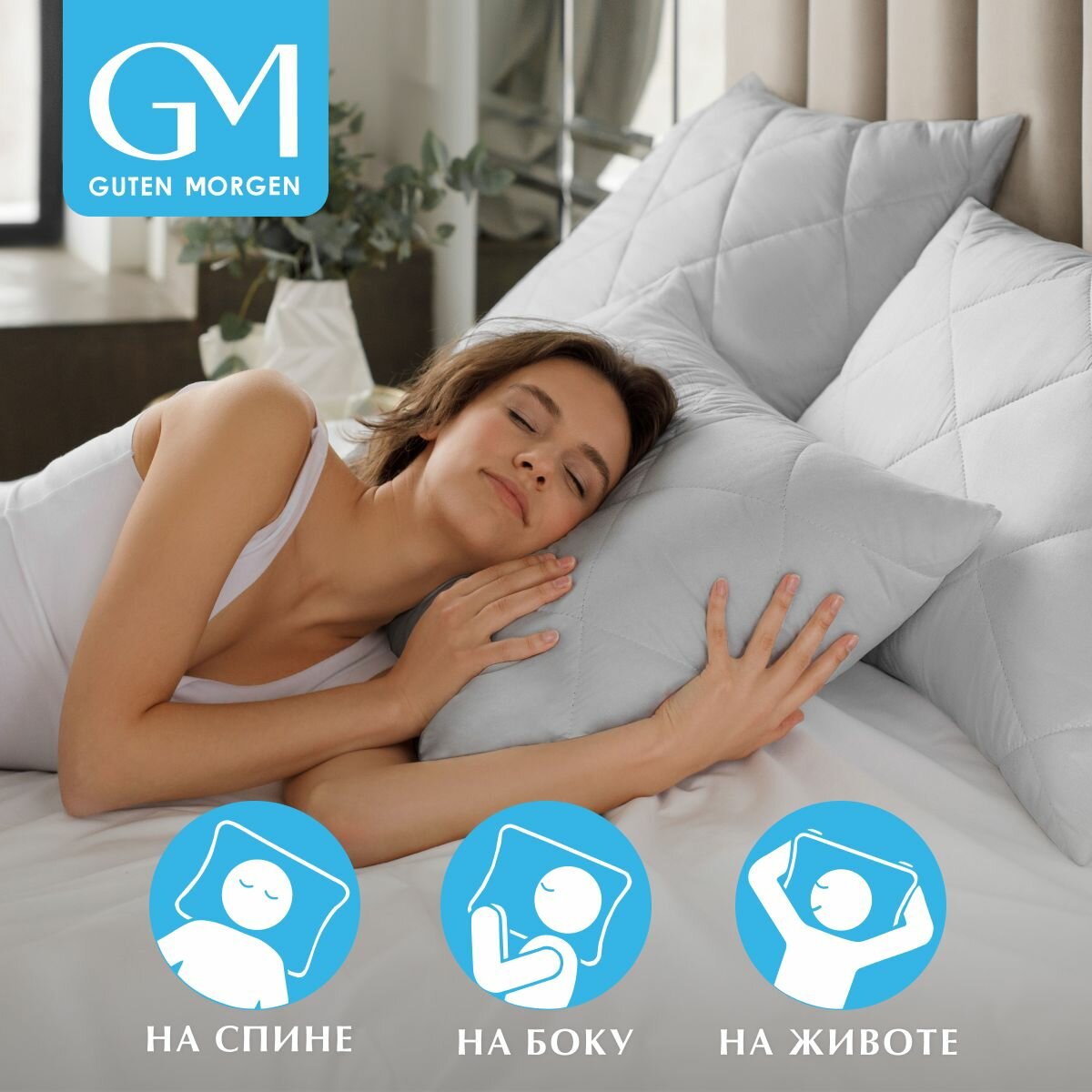Подушка/70x70/для сна/микрофибра/силиконизированное волокно/Guten Morgen