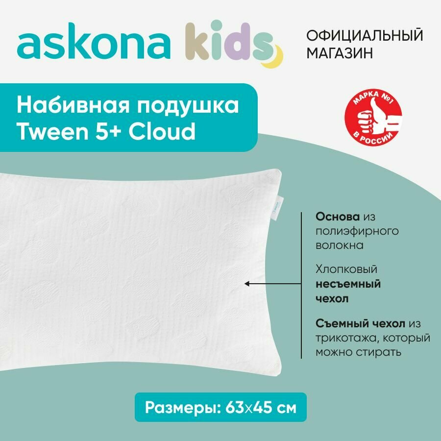 Подушка набивная детская Askona KIDS (Аскона) Tween 5+ Cloud интересное: