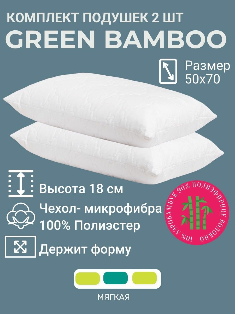 Купить Комплект подушек 50х70х18 Green Bamboo 2 штуки гипоаллергенная, ортопедическая, средней мягкости