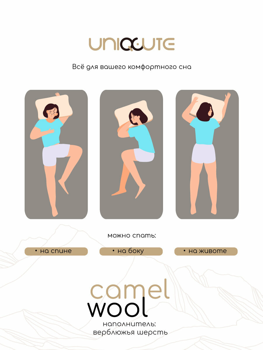Подушка Uniqcute 70х70 см, Верблюжья шерсть, Бамбуковое волокно, Тик, Бежевый интересное: