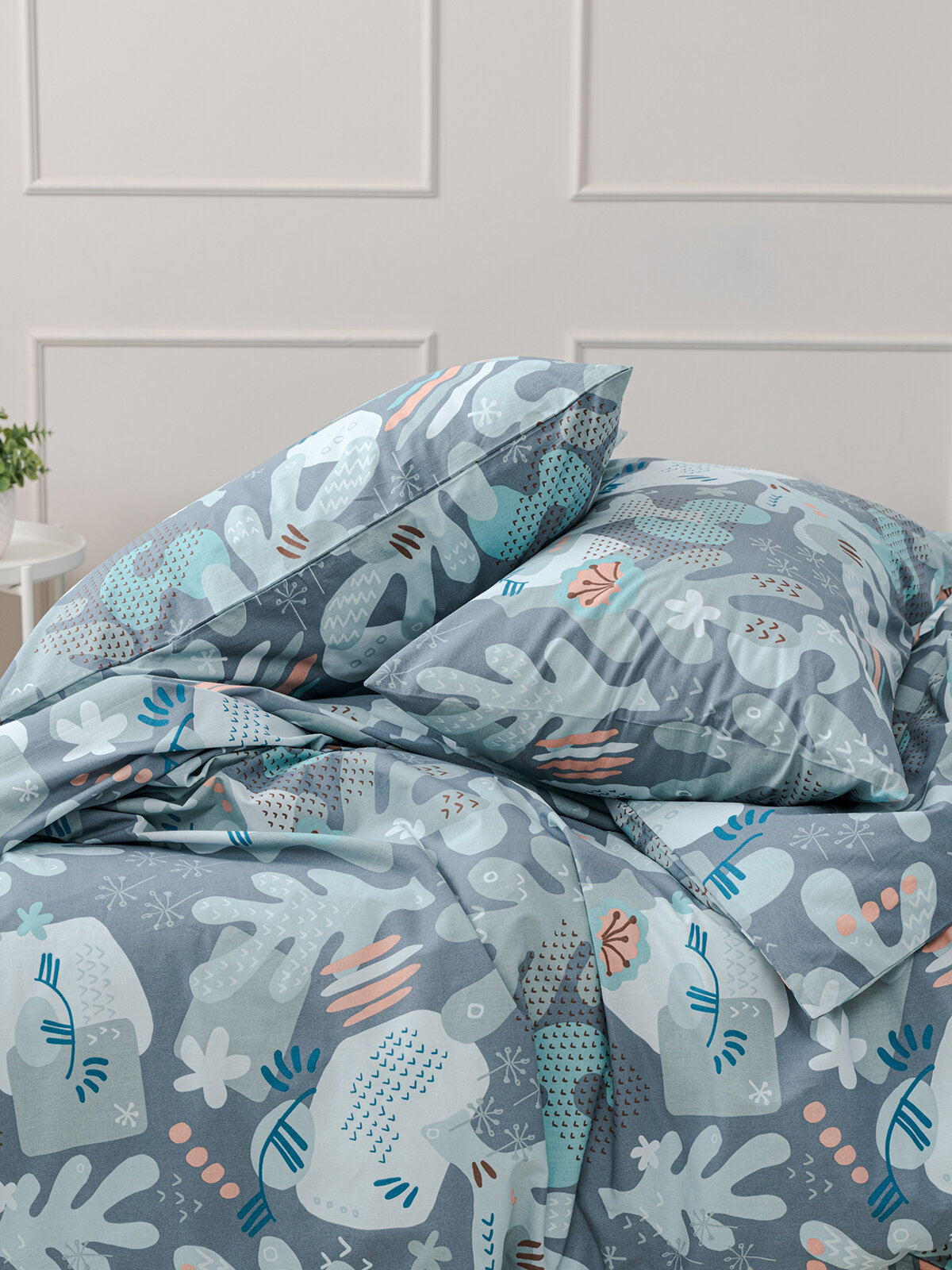 Комплект постельного белья, 2 спальный YERRNA, наволочки 50х70 2шт, перкаль, серо-голубой, с2082шв/204872