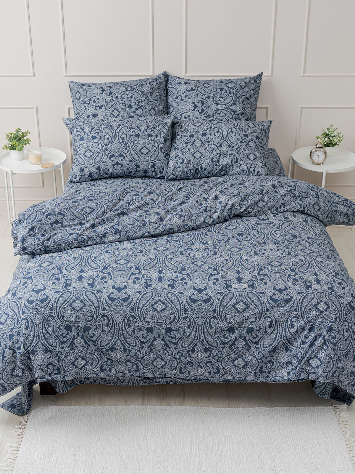 Комплект постельного белья, 2 спальный YERRNA, наволочки 50х70 2шт, перкаль, темно-синий, с2082шв/210081