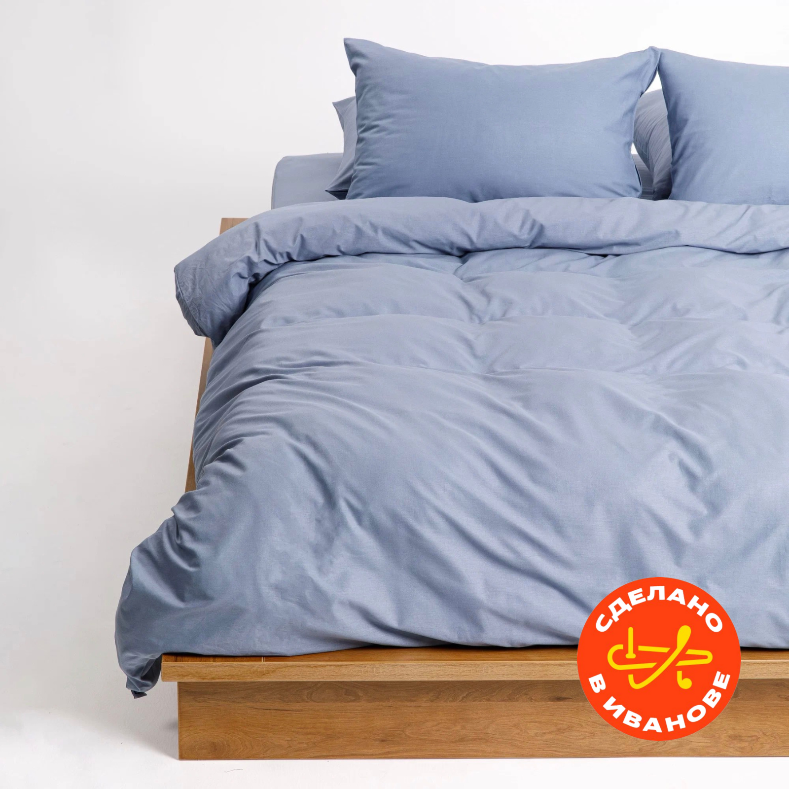 Постельное белье на молнии однотонное Urban Family (аналог икеа), Деним, семейное, наволочки на молнии 50х70, 100% хлопок, перкаль