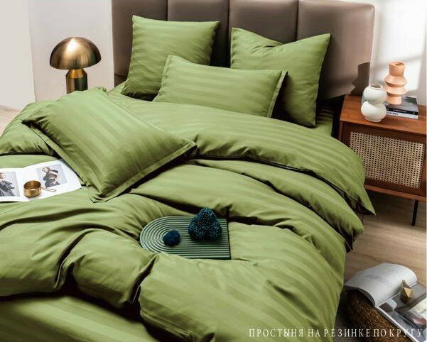 Купить Постельное белье евростандарт двуспальное/ оливковый/ BorisMency/ Страйп сатин / простыня 180x200+25 /пододеяльник 200x220 / Наволочки 50x70-2, 70x70-2