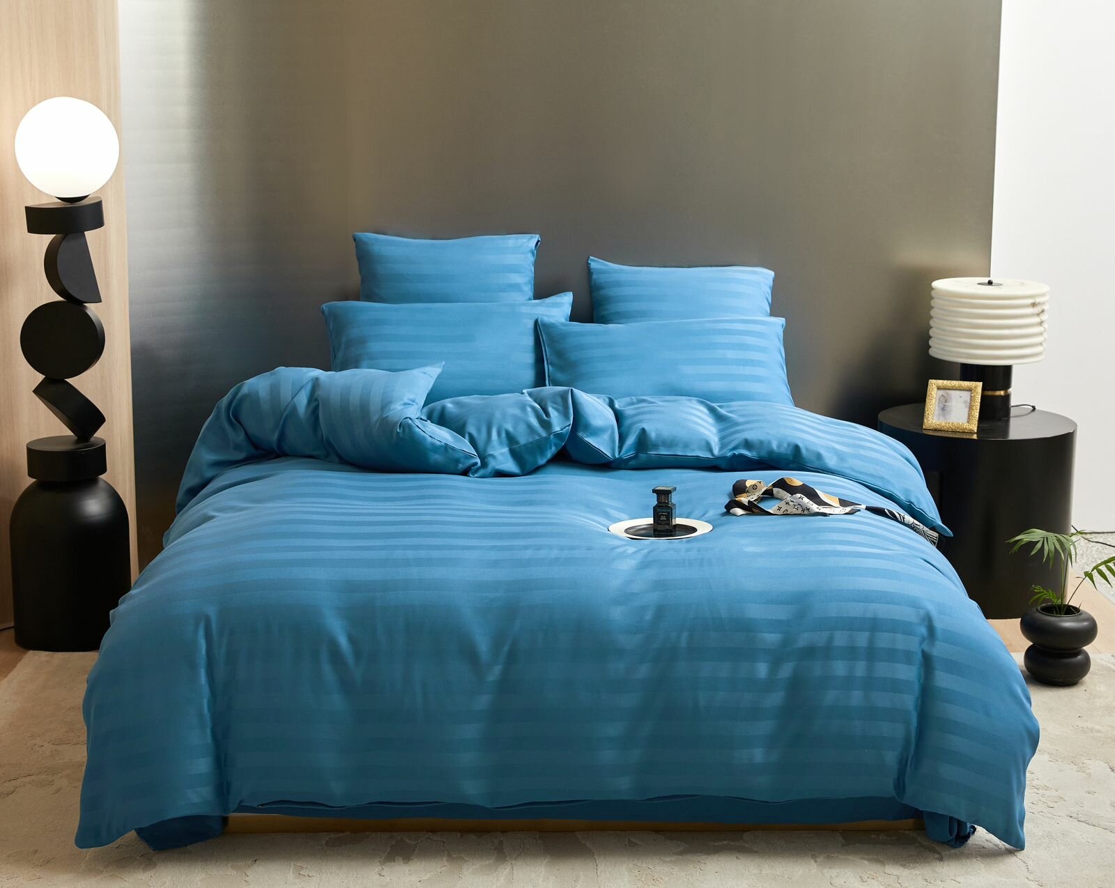 Постельное белье евростандарт двуспальное/ евро/ BorisMency/ Страйп сатин / простыня 180x200+25/пододеяльник 200x220 / 4 Наволочки 50x70-2, 70x70-2