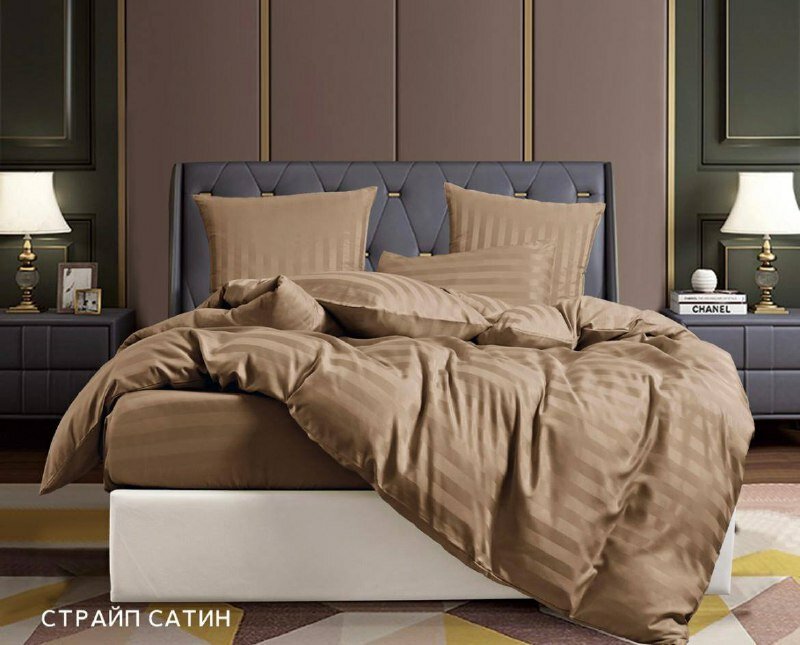 СохранитьПостельное белье евро 2-спальное темно-бежевый CandiesMency страйп сатин, простынь на резинке 180x200+25 интересное: