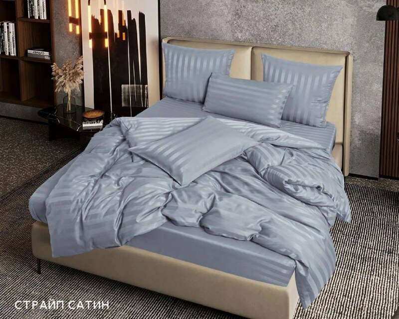 Постельное белье евростандарт двуспальное/ евро/ BorisMency/ Страйп сатин / простыня 180x200+25/пододеяльник 200x220 / 4 Наволочки 50x70-2, 70x70-2