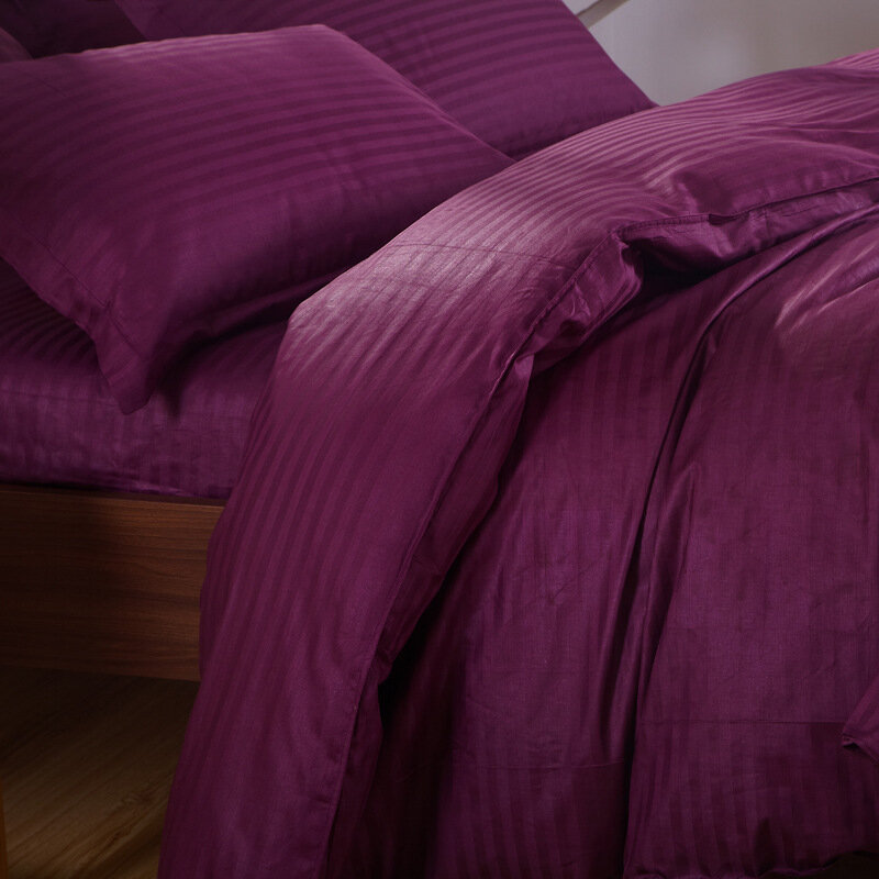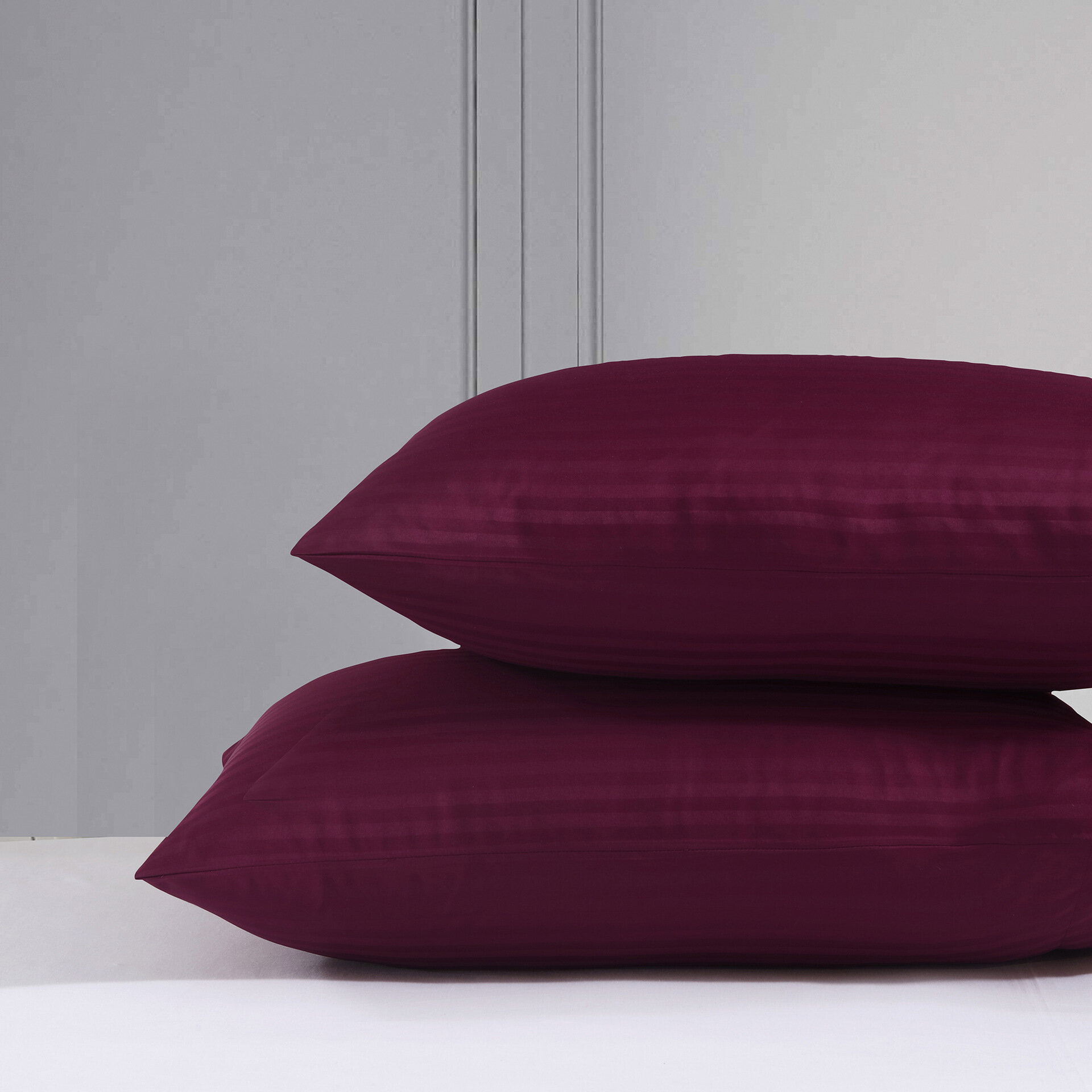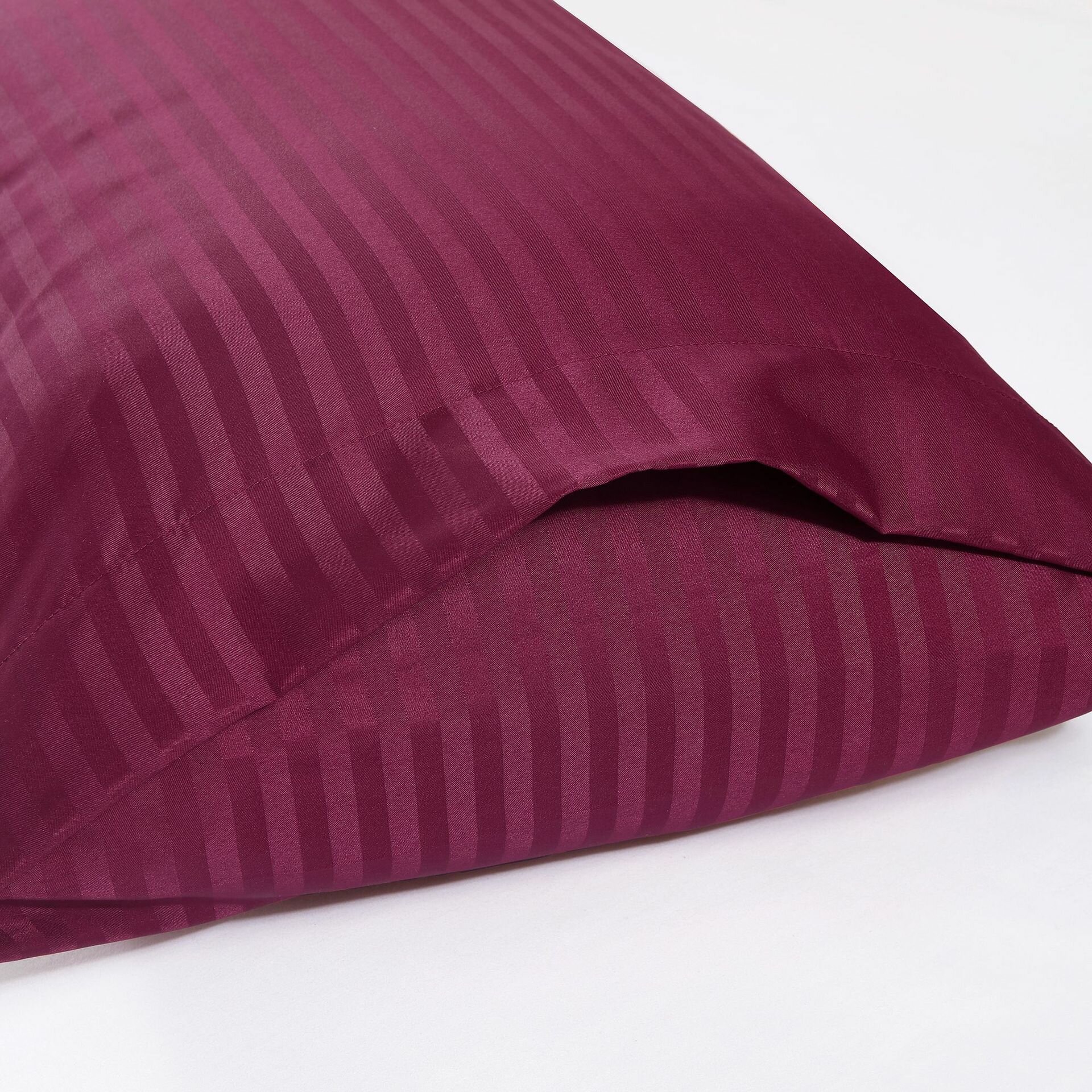 Купить Постельное белье евростандарт 2-спальное/ евро/ BorisMency Страйп сатин, простынь на резинке 180x200+25 рубиновый