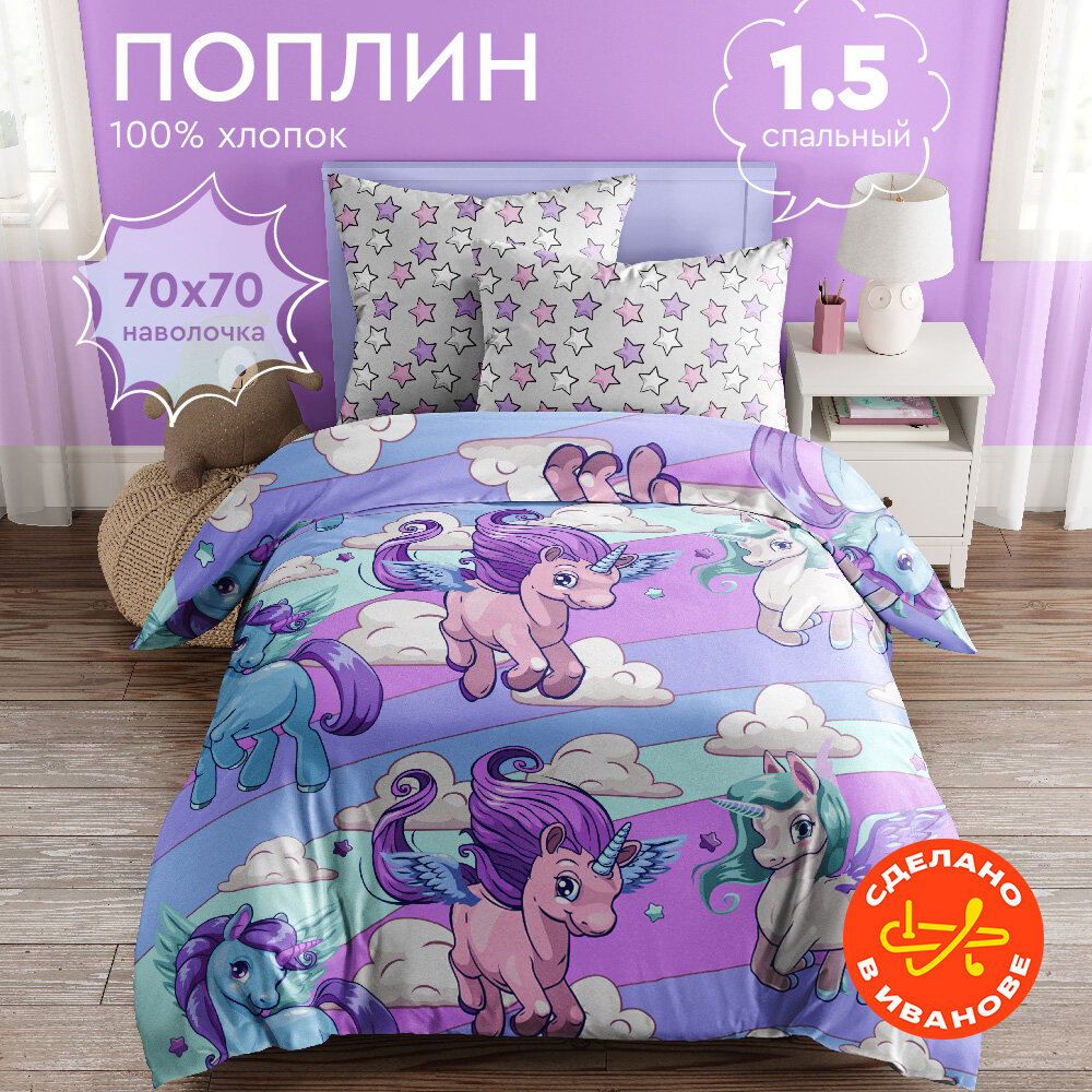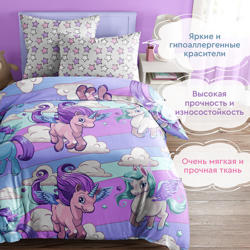 Постельное белье для детей Василек 1,5-спальное, Поплин, наволочка 70х70, Мир единорожек