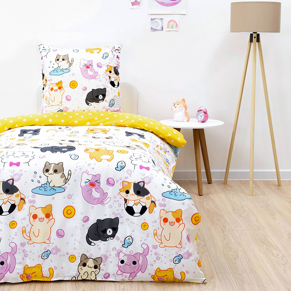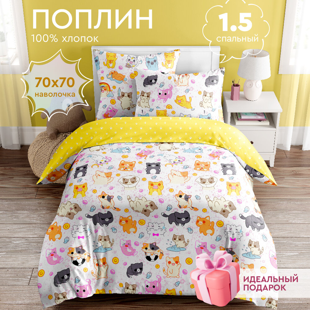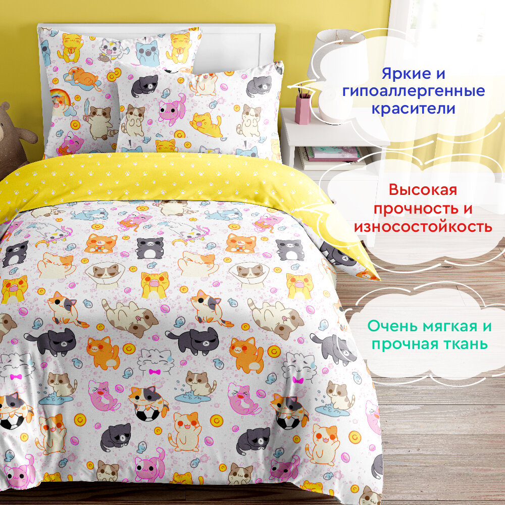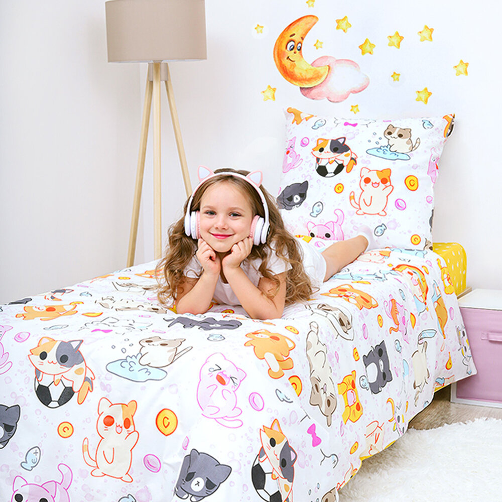 Постельное белье для детей Василек 1,5-спальное, Поплин, наволочка 70х70, Кошачья любовь