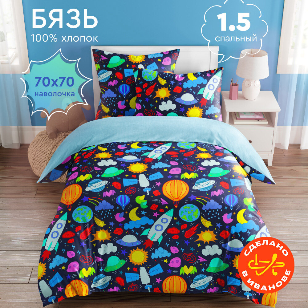 Постельное белье "Василек", 1,5-спальное, Бязь, Космос