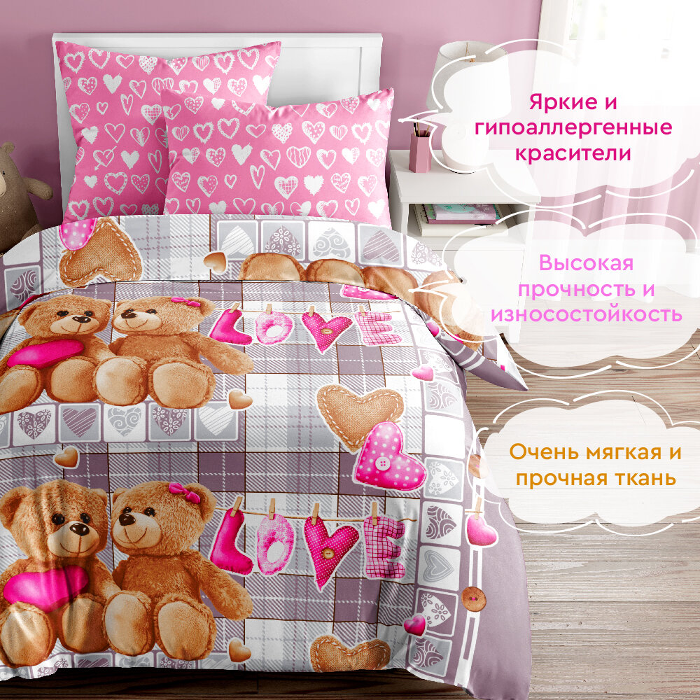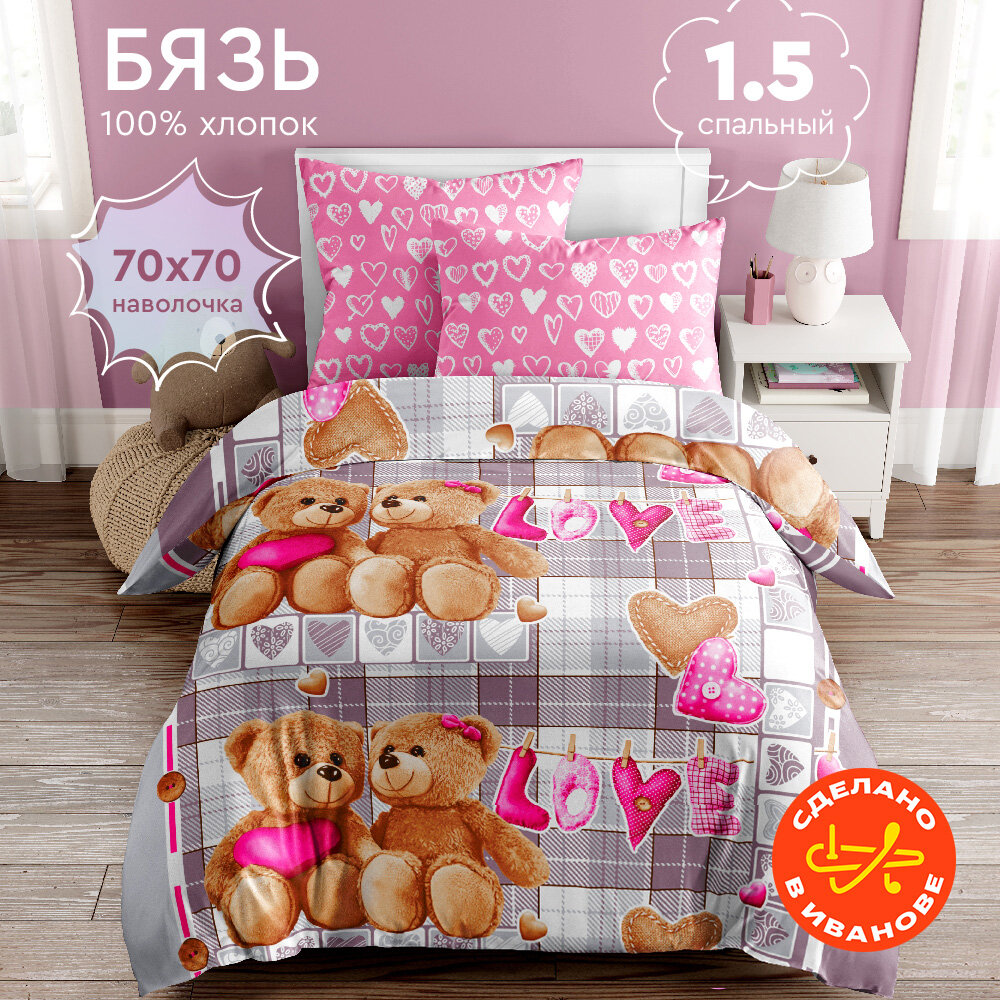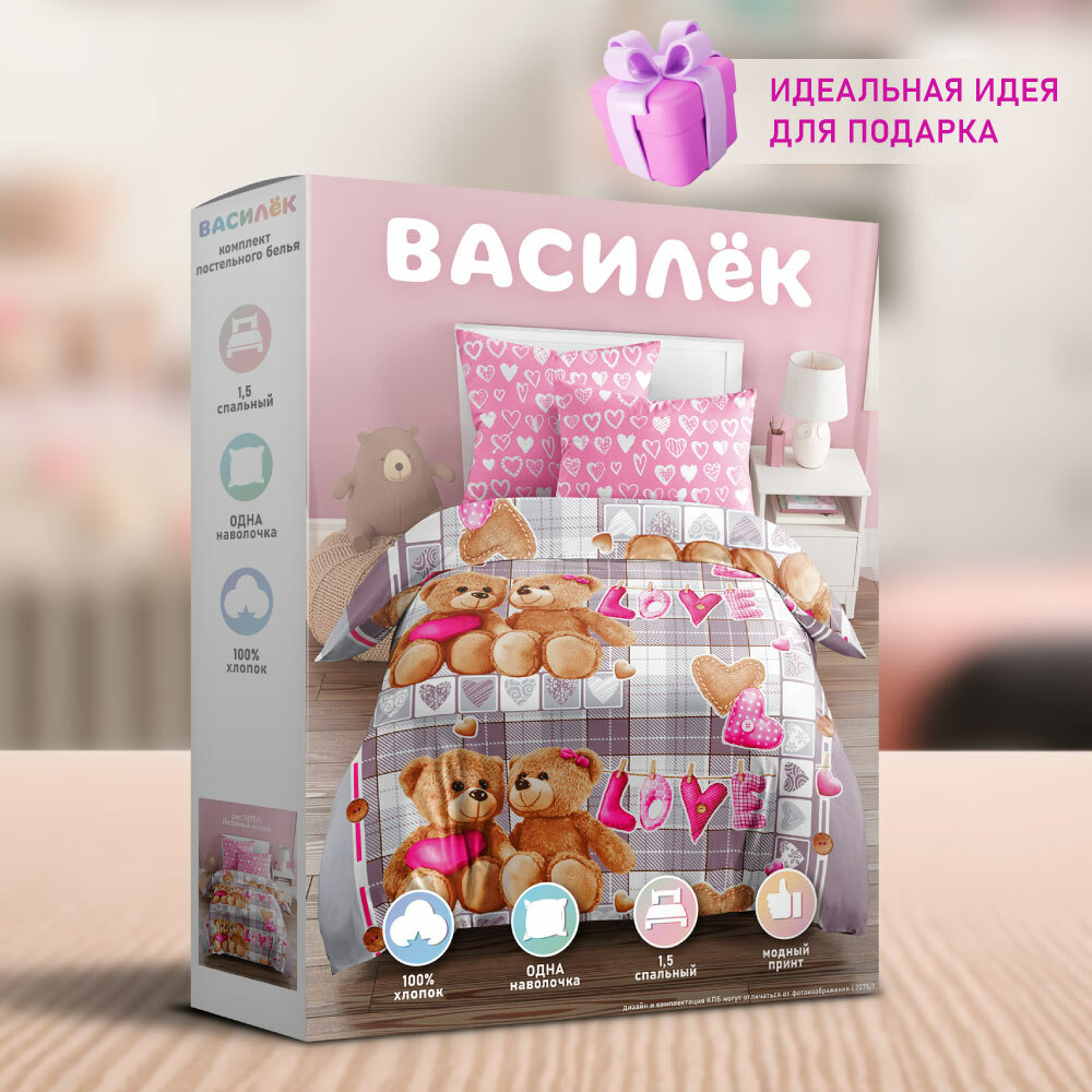 Постельное белье "Василёк" Бязь Тинейджер 7075/1 "Любимый мишка" размер 1,5 спальный для детей и подростков