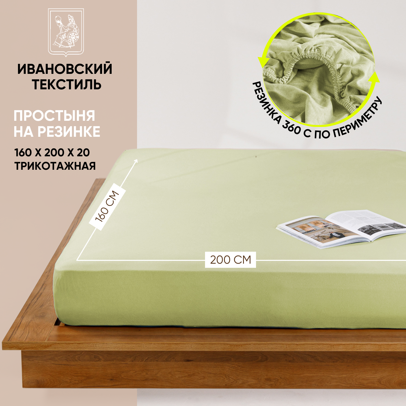 Купить Простынь на резинке однотонная 160х200 см Ночь Нежна Оливковая, трикотажная, 100% хлопок, ткань кулирка