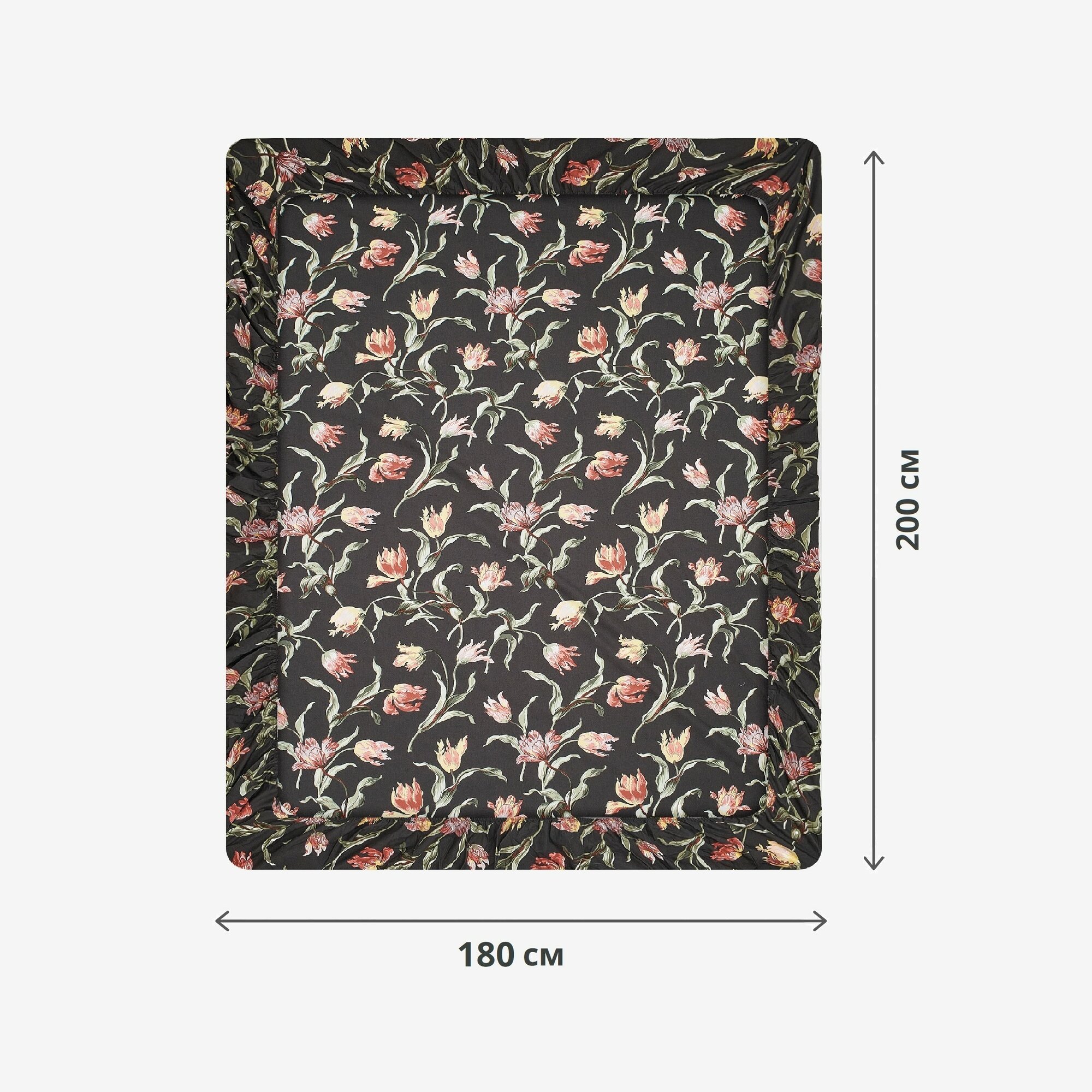 Простынь на резинке 180х200 см, поплин, черный, Feresa Hygge амилия/DVALA, аналог икеа