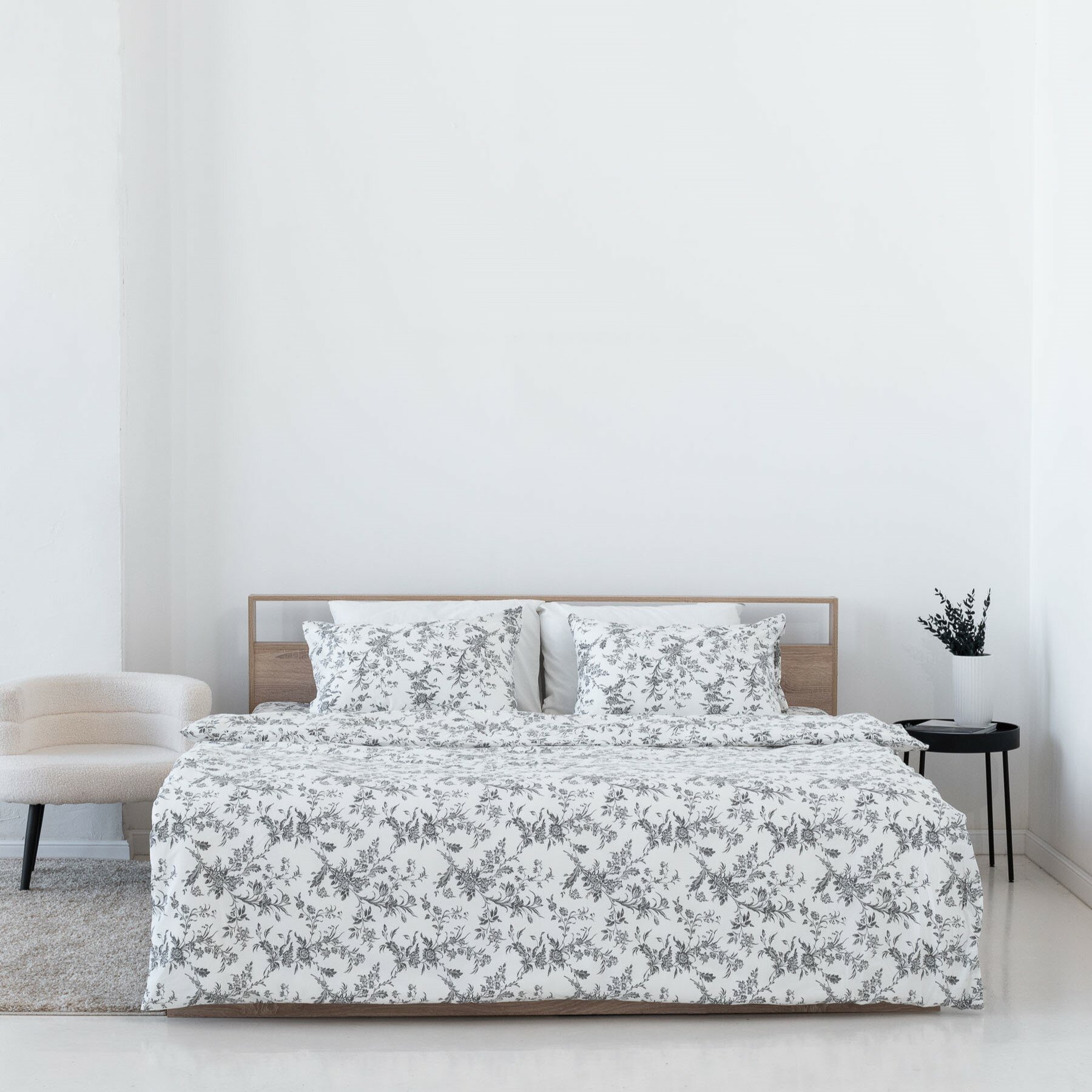 Простынь на резинке 140х200 см, поплин, белый/серый, Feresa Hygge алва/ALVINE KVIST, аналог икеа