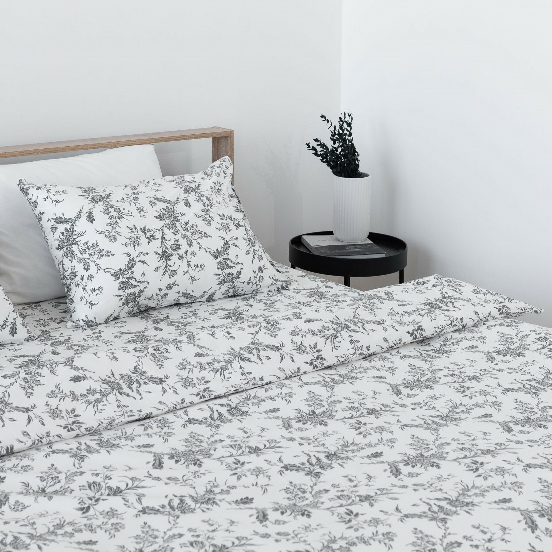Простынь на резинке 90х200 см, поплин, белый/серый, Feresa Hygge алва/ALVINE KVIST, аналог икеа