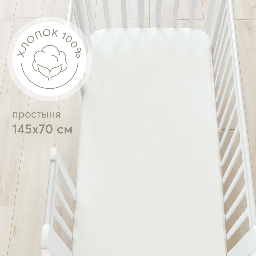 Сохранить87541, Простыня на резинке Happy Baby, постельное белье детское, простынь на резинке в кроватку, размер 145х70, молочная интересное: