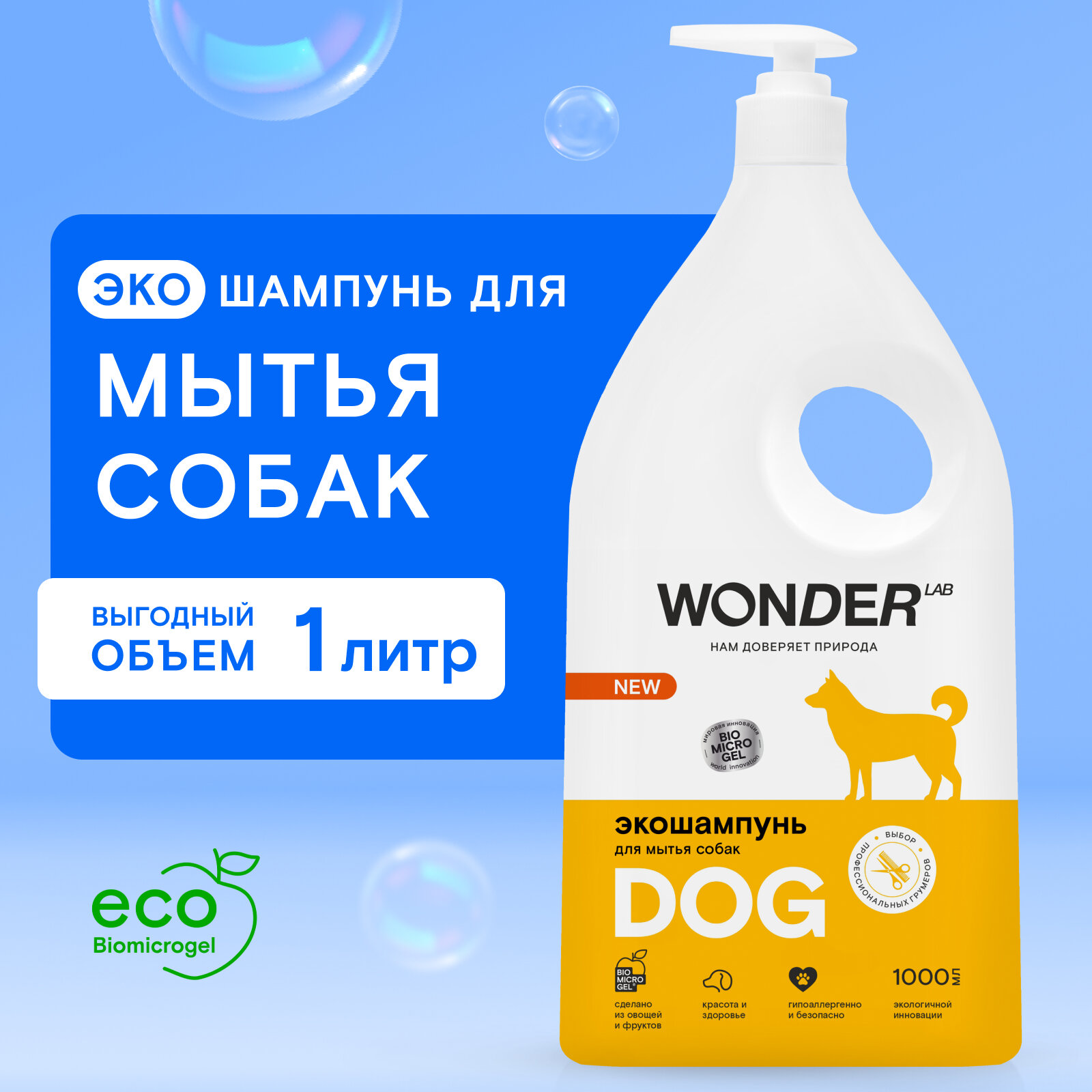 Эко шампунь для собак и щенков гипоаллергенный WONDER LAB, для мытья шерсти и лап длинношерстных и короткошерстных пород, без запаха, 1000 мл