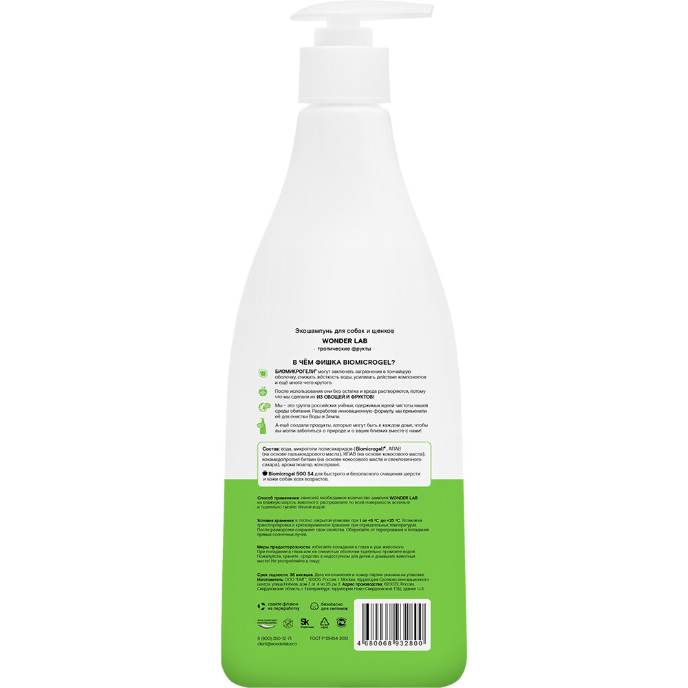 Гипоаллергенный эко шампунь для собак и щенков WONDER LAB "Тропические фрукты", 550 мл